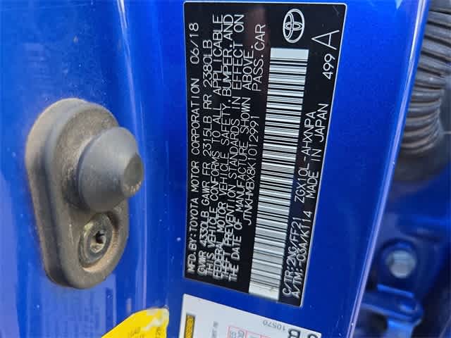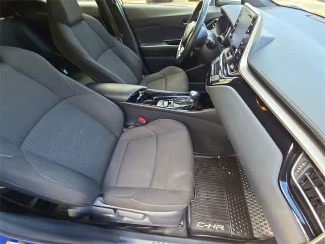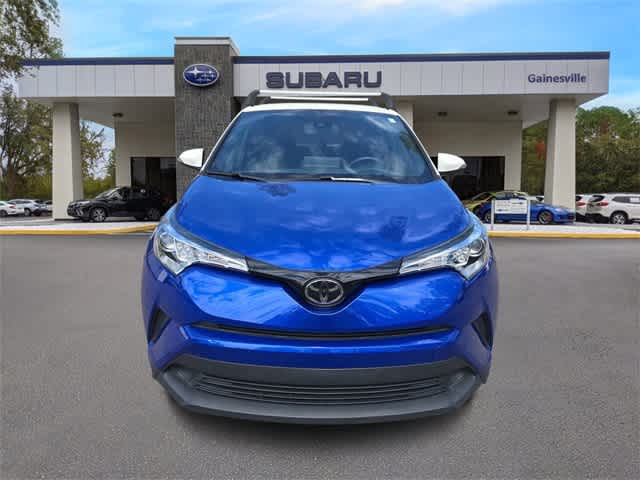 This 2019 Toyota C-HR XLE in Blue Eclipse Metallic, features ABS brakes, Active Cruise Control, Alloy wheels, Electronic Stability Control, Front dual zone A/C, Heated door mirrors, Illuminated entry, Lane Change Assist (LCA), Low tire pressure warning, Remote Keyless Entry, Remote keyless entry, Traction control, 18 Alloy Wheels, 4-Wheel Disc Brakes, 6 Speakers, Air Conditioning, AM/FM radio, Apple CarPlay, Auto High-beam Headlights, Auto-dimming Rear-View mirror, Automatic temperature control, Axle Ratio: TBD, Brake assist, Bumpers: body-color, Delay-off headlights, Driver door bin, Driver vanity mirror, Dual front impact airbags, Dual front side impact airbags, Exterior Parking Camera Rear, Fabric Seat Material, Four wheel independent suspension, Front anti-roll bar, Front Bucket Seats, Front Center Armrest, Front reading lights, Fully automatic headlights, Knee airbag, Leather Shift Knob, Occupant sensing airbag, Outside temperature display, Overhead airbag, Panic alarm, Passenger door bin, Passenger vanity mirror, Power door mirrors, Power steering, Power windows, PVC Sun Visor, Radio data system, Radio: AM/FM Stereo w/8 Touch-Screen Display, Rear anti-roll bar, Rear side impact airbag, Rear window defroster, Rear window wiper, Smart-Master 2 Key Plate, Speed control, Speed-sensing steering, Split folding rear seat, Spoiler, Steering wheel mounted audio controls, Tachometer, Telescoping steering wheel, Tilt steering wheel, Trip computer, Turn signal indicator mirrors, and Variably intermittent wipers: BLUETOOTH HANDS FREE, BACK-UP CAMERA, ALLOY WHEELS, ABS brakes, Active Cruise Control, Alloy wheels, Electronic Stability Control, Front dual zone A/C, Heated door mirrors, Illuminated entry, Lane Change Assist (LCA), Low tire pressure warning, Remote Keyless Entry, Remote keyless entry, Traction control.
