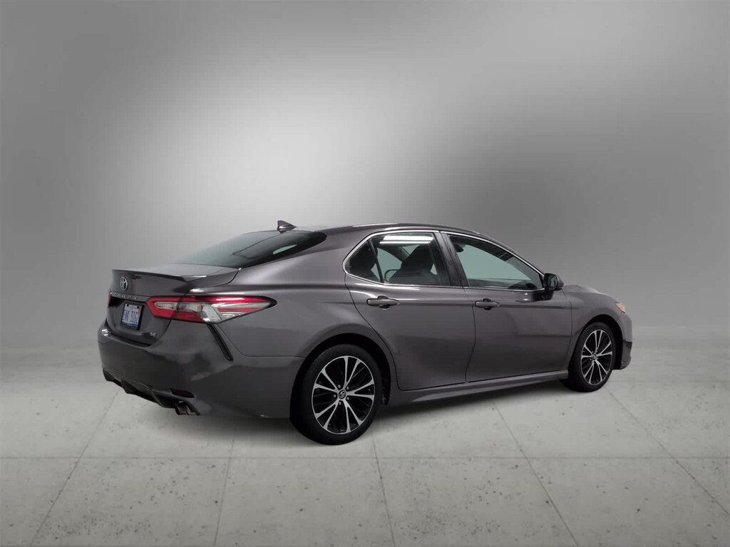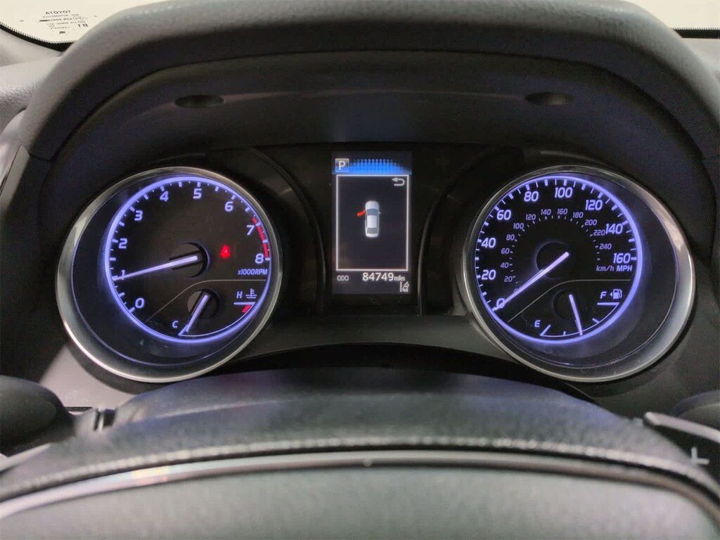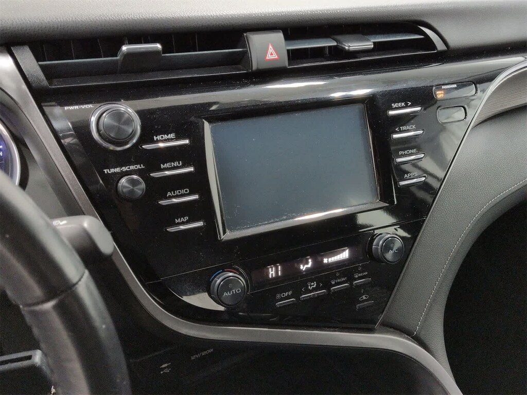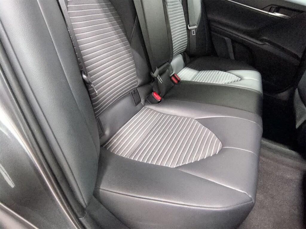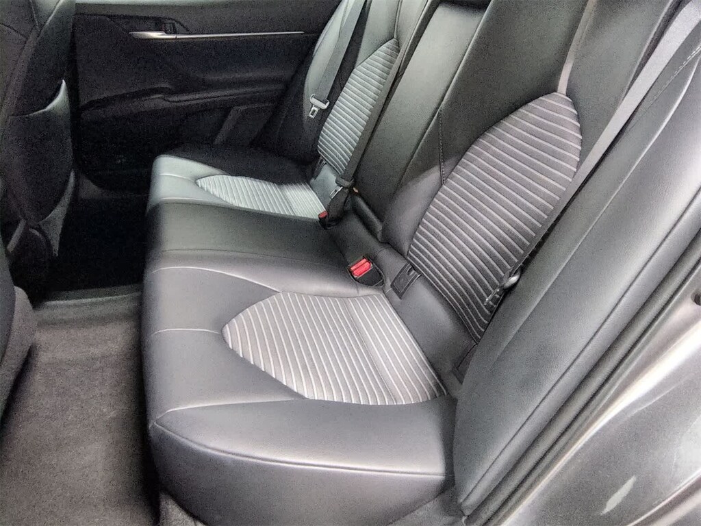 Camry SE is nicely equipped with Ash Leather, ABS brakes, Active Cruise Control, Alloy wheels, Electronic Stability Control, Illuminated entry, Low tire pressure warning, Navigation System, Remote keyless entry, Traction control, 4-Wheel Disc Brakes, 6 Speakers, Air Conditioning, AM/FM radio, Apple CarPlay, Auto High-beam Headlights, Automatic temperature control, Brake assist, Bumpers: body-color, Delay-off headlights, Driver door bin, Driver vanity mirror, Dual front impact airbags, Dual front side impact airbags, Emergency communication system: Safety Connect, Exterior Parking Camera Rear, Fabric Seat Trim w/SofTex, Four wheel independent suspension, Front anti-roll bar, Front Bucket Seats, Front Bucket Sport Seats, Front Center Armrest, Front reading lights, Fully automatic headlights, Knee airbag, Leather Shift Knob, Occupant sensing airbag, Outside temperature display, Overhead airbag, Overhead console, Panic alarm, Passenger door bin, Passenger vanity mirror, Power door mirrors, Power driver seat, Power steering, Power windows, Radio data system, Radio: Entune 3.0 Audio w/App Suite, Rear anti-roll bar, Rear reading lights, Rear seat center armrest, Rear side impact airbag, Rear window defroster, Security system, Speed control, Speed-sensing steering, Split folding rear seat, Spoiler, Sport steering wheel, Steering wheel mounted audio controls, Tachometer, Telescoping steering wheel, Tilt steering wheel, Trip computer, Variably intermittent wipers, and Wheels: 8.0J x 18 Black Machined-Finish Alloy.