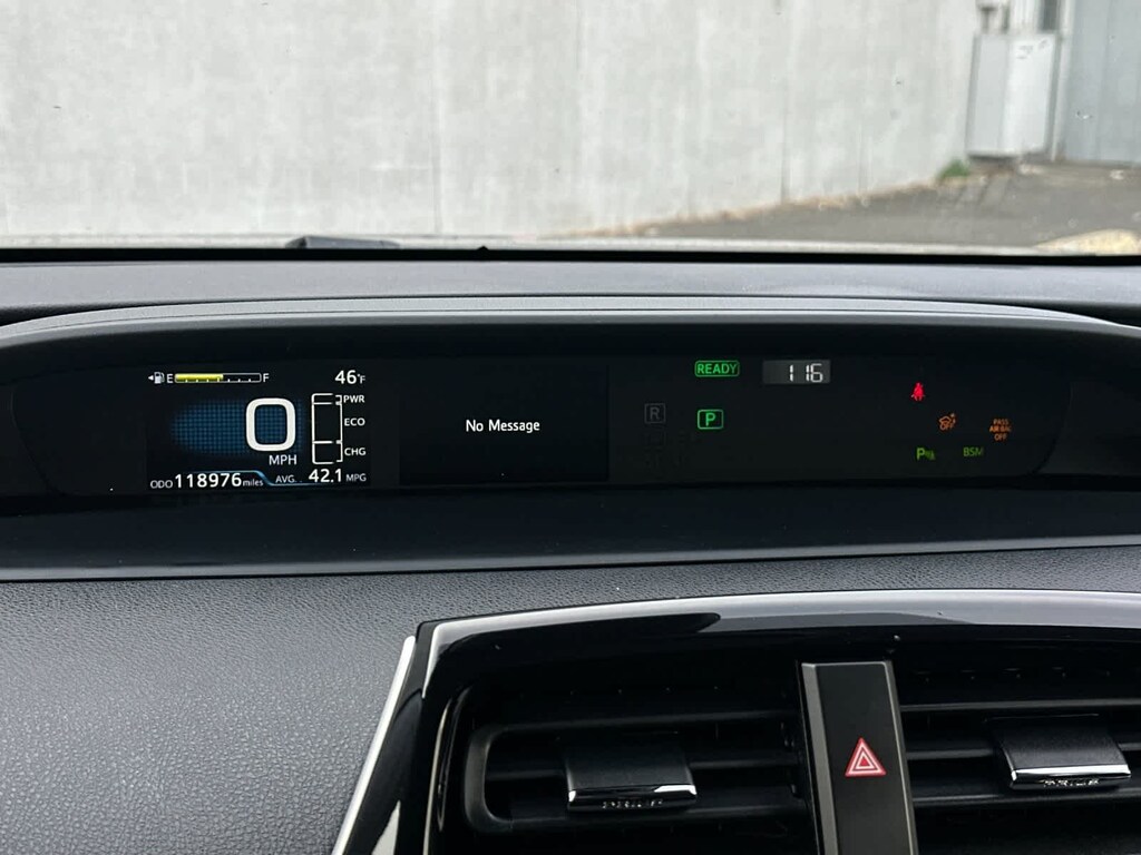 Magnetic Gray Metallic 2019 Toyota Prius LE AWD-e AWD CVT 1.8L 4-Cylinder DOHC 16V VVT-i 1.8L 4-Cylinder DOHC 16V VVT-i, ABS brakes, Active Cruise Control, Alloy wheels, Electronic Stability Control, Heated door mirrors, Illuminated entry, Low tire pressure warning, Remote keyless entry, Traction control.