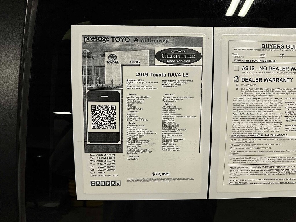 RAV4 LE, 4D Sport Utility, 2.5L 4-Cylinder DOHC Dual VVT-i, 8-Speed Automatic, AWD, Midnight Black Metallic. Clean CARFAX. Midnight Black Metallic 2019 Toyota RAV4 LE AWD 8-Speed Automatic 2.5L 4-Cylinder DOHC Dual VVT-i