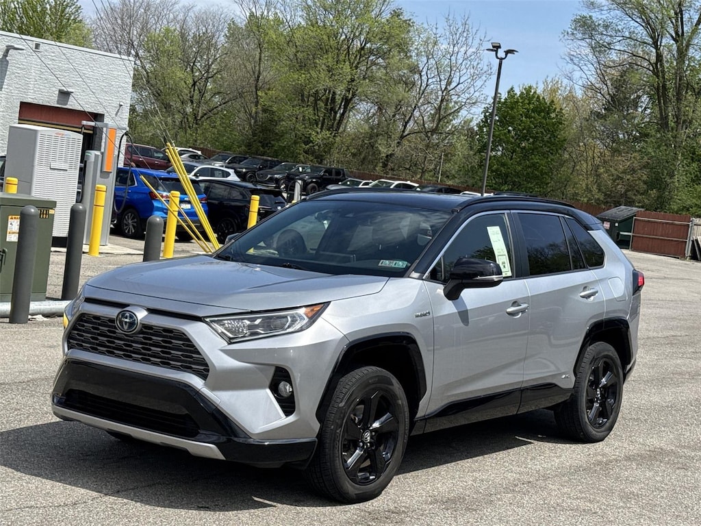 Baierl Acura is very proud to offer this superb-looking 2019 Toyota RAV4 Hybrid in Silver Sky Metallic. This vehicle has been through our award winning factory trained service department*** and comes with the following features; Baierl PREFERRED 60 day / 3000 MILES/$0 DEDUCTIBLE WARRANTY, Theres no back-and-forth, we offer one fair price, CLEAN CARFAX, XSE PACKAGE, HEATED FRONT SEATS, POWER MOONROOF, ENTUNE 3.0 AUDIO PLUS SYSTEM, APPLE CARPLAY, SIRIUSXM, DUAL ZONE CLIMATE CONTROL, PANORAMIC VIEW MONITOR BACK-UP CAMERA, PRE-COLLISION SYSTEM, ADAPTIVE CRUISE CONTROL WITH TRAFFIC STOP / GO, REAR CROSS TRAFFIC ALERT, LANE TRACING ASSIST, 18 BLACK PAINTED ALUMINUM ALLOY WHEELS, POWER LIFTGATE, 2.5L 4-Cylinder, 4-Wheel Disc Brakes, ABS brakes, AM/FM radio: SiriusXM, Apple CarPlay, Auto High-beam Headlights, Auto-dimming Rear-View mirror, Brake assist, Bumpers: body-color, Delay-off headlights, Driver door bin, Driver vanity mirror, Dual front impact airbags, Dual front side impact airbags, Electronic Stability Control, Emergency communication system: Safety Connect, Four wheel independent suspension, Front anti-roll bar, Front Bucket Seats, Front Center Armrest, Front dual zone A/C, Front fog lights, Front reading lights, Fully automatic headlights, Garage door transmitter: HomeLink, Heated door mirrors, Heated Front Seats, Illuminated entry, Knee airbag, Leather Shift Knob, Low tire pressure warning, Occupant sensing airbag, Outside temperature display, Overhead airbag, Overhead console, Panic alarm, Passenger door bin, Passenger vanity mirror, Power door mirrors, Power driver seat, Power Liftgate, Power moonroof, Power steering, Power windows, Radio: Entune 3.0 Audio Plus, Rear anti-roll bar, Rear seat center armrest, Rear window defroster, Rear window wiper, Remote keyless entry, Roof rack: rails only, Security system, SofTex Seat Trim (EC), Speed control, Speed-sensing steering, Split folding rear seat, Spoiler, Steering wheel mounted audio controls, Telescoping steering wheel, Traction control, Trip computer, Turn signal indicator mirrors, Variably intermittent wipers, Wheels: 18 x 7.0J Black-Painted Aluminum Alloy, XSE Package.