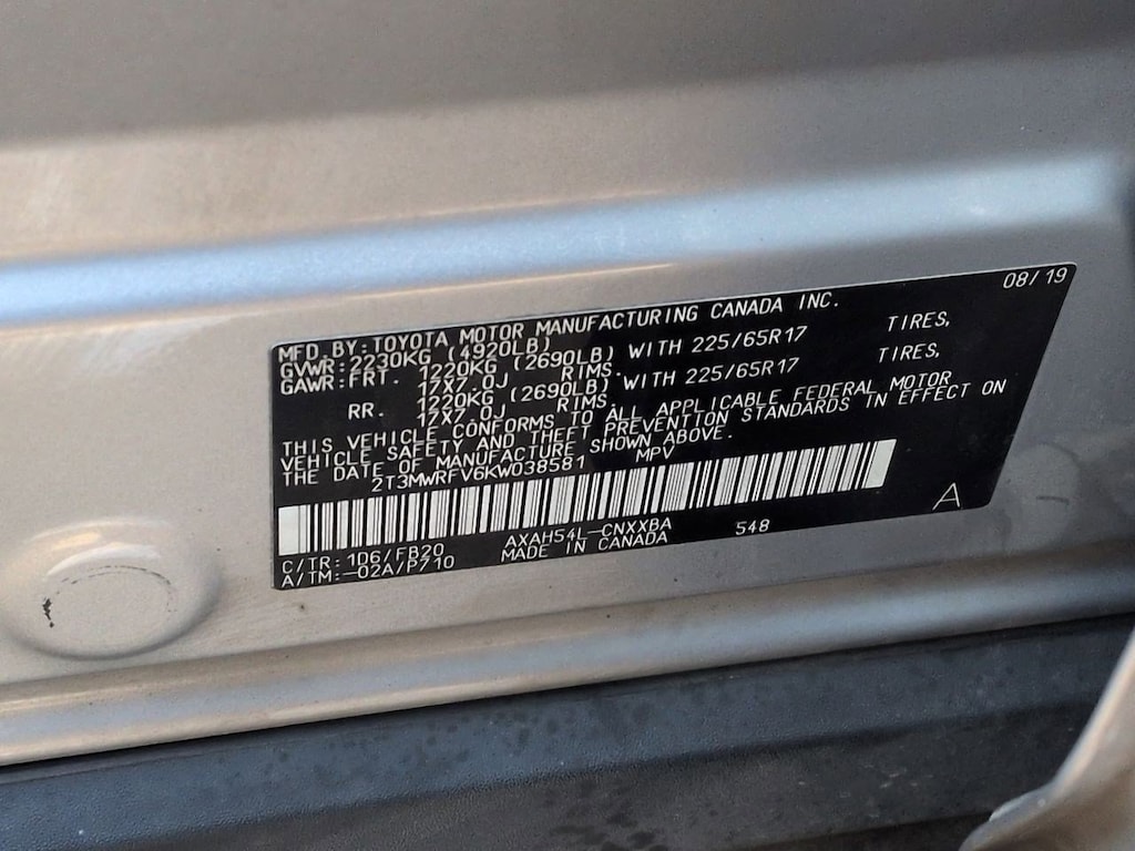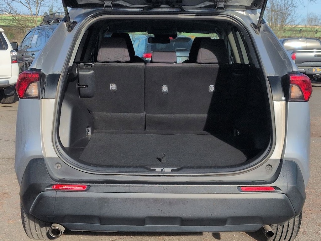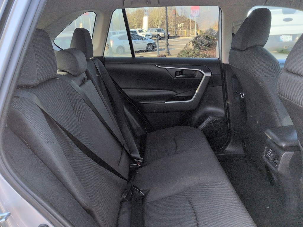 2.5L 4-Cylinder, 4-Wheel Disc Brakes, 6 Speakers, ABS brakes, Air Conditioning, Alloy wheels, AM/FM radio, Apple CarPlay, Auto High-beam Headlights, Automatic temperature control, Axle Ratio: TBD, Brake assist, Bumpers: body-color, Driver door bin, Driver vanity mirror, Dual front impact airbags, Dual front side impact airbags, Electronic Stability Control, Emergency communication system: Safety Connect, Exterior Parking Camera Rear, Fabric Seat Trim, Four wheel independent suspension, Front anti-roll bar, Front Bucket Seats, Front Center Armrest, Front dual zone A/C, Front reading lights, Front Sport Seats, Illuminated entry, Knee airbag, Low tire pressure warning, Occupant sensing airbag, Outside temperature display, Overhead airbag, Overhead console, Panic alarm, Passenger door bin, Passenger vanity mirror, Power door mirrors, Power steering, Power windows, Radio data system, Radio: Entune Audio w/App Suite, Rear anti-roll bar, Rear seat center armrest, Rear window defroster, Rear window wiper, Remote keyless entry, Roof rack: rails only, Speed control, Speed-sensing steering, Split folding rear seat, Spoiler, Steering wheel mounted audio controls, Telescoping steering wheel, Tilt steering wheel, Traction control, Trip computer, Wheels: 17 x 7.0J Silver Aluminum Alloy, 2.5L 4-Cylinder. Silver Sky Metallic 2019 Toyota RAV4 Hybrid LE AWD eCVT 2.5L 4-Cylinder