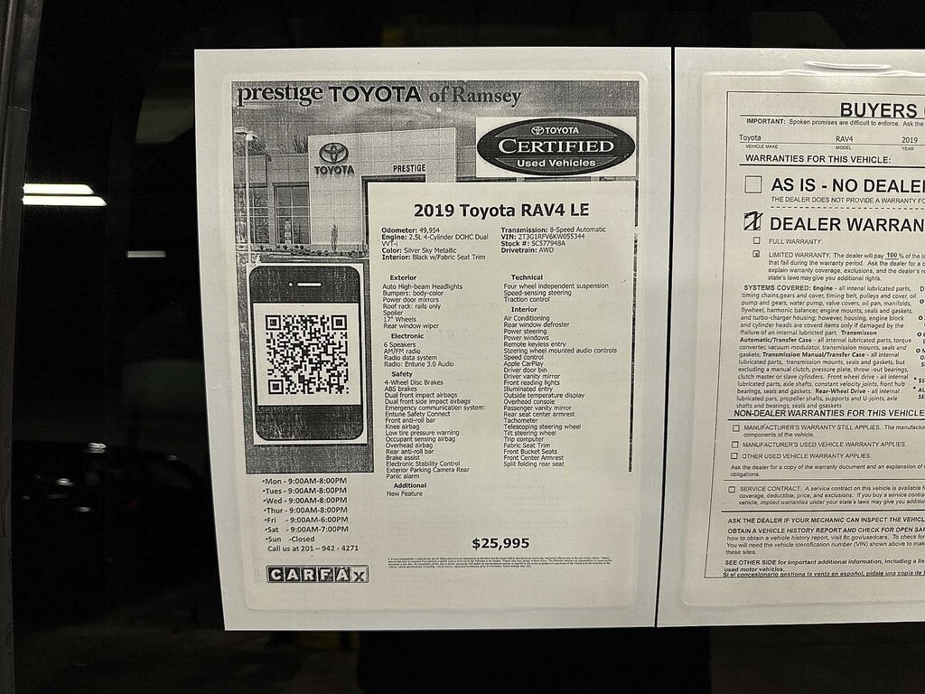 This 2019 Toyota RAV4 LE will not make it to the weekend!! CALL NOW to reserve your test drive!! (844) 838-7075 Please Visit www.PrestigeToyota.com for further details. Price does not include licensing costs, registration fees, taxes and dealer doc fee of $999 which are to be paid by the consumer.