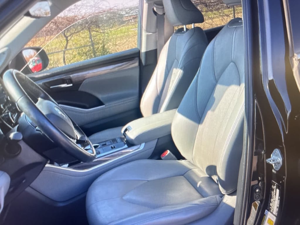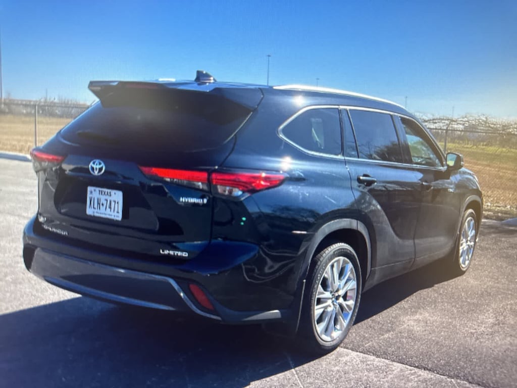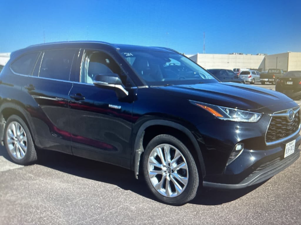 Clean CARFAX. Black 2021 Toyota Highlander Hybrid Limited AWD eCVT 2.5L I4 PDI Hybrid DOHC 16V LEV3-SULEV30 186hp 2.5L I4 PDI Hybrid DOHC 16V LEV3-SULEV30 186hp, 11 Speakers, 3rd row seats: split-bench, 4-Wheel Disc Brakes, ABS brakes, Air Conditioning, Alloy wheels, AM/FM radio: SiriusXM, Apple CarPlay/Android Auto, Auto High-beam Headlights, Auto-dimming Rear-View mirror, Automatic temperature control, Axle Ratio TBD, Brake assist, Bumpers: body-color, Chrome wheels, Delay-off headlights, Driver door bin, Driver vanity mirror, Dual front impact airbags, Dual front side impact airbags, Electronic Stability Control, Emergency communication system: Safety Connect with 1-year trial, Exterior Parking Camera Rear, Four wheel independent suspension, Front anti-roll bar, Front Bucket Seats, Front Center Armrest, Front dual zone A/C, Front fog lights, Front reading lights, Fully automatic headlights, Garage door transmitter: HomeLink, Heated & Ventilated Front Bucket Seats, Heated door mirrors, Heated front seats, Heated steering wheel, Illuminated entry, Knee airbag, Leather Seat Trim, Leather Shift Knob, Low tire pressure warning, Memory seat, Navigation system: Dynamic Navigation (3-year trial), Occupant sensing airbag, Outside temperature display, Overhead airbag, Overhead console, Panic alarm, Passenger door bin, Passenger vanity mirror, Power door mirrors, Power driver seat, Power Liftgate, Power moonroof, Power passenger seat, Power steering, Power windows, Radio: JBL Premium Audio w/Navigation System, Rear air conditioning, Rear anti-roll bar, Rear reading lights, Rear window defroster, Rear window wiper, Reclining 3rd row seat, Remote keyless entry, Roof rack: rails only, Security system, Speed control, Speed-sensing steering, Split folding rear seat, Spoiler, Steering wheel mount