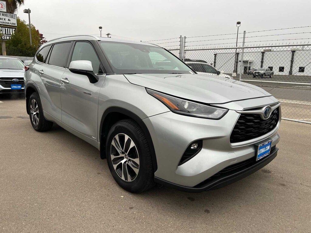 Celestial Silver Metallic 2021 Toyota Highlander Hybrid XLE AWD eCVT 2.5L I4 PDI Hybrid DOHC 16V LEV3-SULEV30 186hp FRESH ENGINE and CABIN FILTERS, FRESH OIL CHANGE, 138 point Lithia inspected, DETAILED INTERIOR AND EXTERIOR FOR DELIVERY, Multi Point Safety and Mechanical Inspection Performed by Certified Technician, 2.5L I4 PDI Hybrid DOHC 16V LEV3-SULEV30 186hp, 3rd row seats: split-bench, 4-Wheel Disc Brakes, 6 Speakers, ABS brakes, Air Conditioning, AM/FM radio: SiriusXM, Apple CarPlay/Android Auto, Auto High-beam Headlights, Auto-dimming Rear-View mirror, Automatic temperature control, Brake assist, Electronic Stability Control, Emergency communication system: Safety Connect with 1-year trial, Exterior Parking Camera Rear, Four wheel independent suspension, Front anti-roll bar, Front Bucket Seats, Front dual zone A/C, Fully automatic headlights, Garage door transmitter: HomeLink, Heated door mirrors, Heated Front Bucket Seats, Heated front seats, Leather Shift Knob, Outside temperature display, Power door mirrors, Power Liftgate, Power moonroof, Power steering, Power windows, Radio: Audio Plus (T1 Hi), Rear air conditioning, Rear anti-roll bar, Reclining 3rd row seat, Remote keyless entry, Roof rack: rails only, SofTex Seat Trim, Speed control, Speed-sensing steering, Split folding rear seat, Spoiler, Steering wheel mounted audio controls, Telescoping steering wheel, Tilt steering wheel, Traction control, Turn signal indicator mirrors.