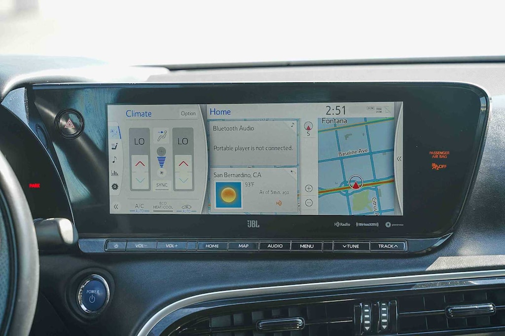 ABS brakes, Active Cruise Control, Alloy wheels, Electronic Stability Control, Front dual zone A/C, Heated door mirrors, Heated Front Bucket Seats, Heated front seats, Illuminated entry, Low tire pressure warning, Navigation System, Remote keyless entry, Traction control, 14 Speakers, 4-Wheel Disc Brakes, Air Conditioning, AM/FM radio: SiriusXM, Apple CarPlay/Android Auto, Auto High-beam Headlights, Auto-dimming Rear-View mirror, Automatic temperature control, Brake assist, Bumpers: body-color, Delay-off headlights, Driver door bin, Driver vanity mirror, Dual front impact airbags, Dual front side impact airbags, Emergency communication system: Safety Connect with 1-year trial, Exterior Parking Camera Rear, Front anti-roll bar, Front Bucket Seats, Front Center Armrest, Front reading lights, Front wheel independent suspension, Fully automatic headlights, Garage door transmitter: HomeLink, Knee airbag, Navigation system: Dynamic Navigation (3-year trial), Occupant sensing airbag, Outside temperature display, Overhead airbag, Panic alarm, Passenger door bin, Passenger vanity mirror, Power door mirrors, Power driver seat, Power passenger seat, Power steering, Power windows, Radio data system, Radio: Premium Audio, Rain sensing wipers, Rear anti-roll bar, Rear seat center armrest, Rear window defroster, SofTex Embossed Seat Trim, Speed control, Speed-Sensitive Wipers, Steering wheel mounted audio controls, Telescoping steering wheel, Tilt steering wheel, Trip computer, Turn signal indicator mirrors, Variably intermittent wipers, and Wheels: 19 Twin-Spoke Aluminum. ABS brakes, Active Cruise Control, Alloy wheels, Electronic Stability Control, Front dual zone A/C, Heated door mirrors, Heated Front Bucket Seats, Heated front seats, Illuminated entry, Low tire pressure warning, Navigation System, Remote keyless entry, Traction control. Electric Motor 1-Speed Automatic RWD
