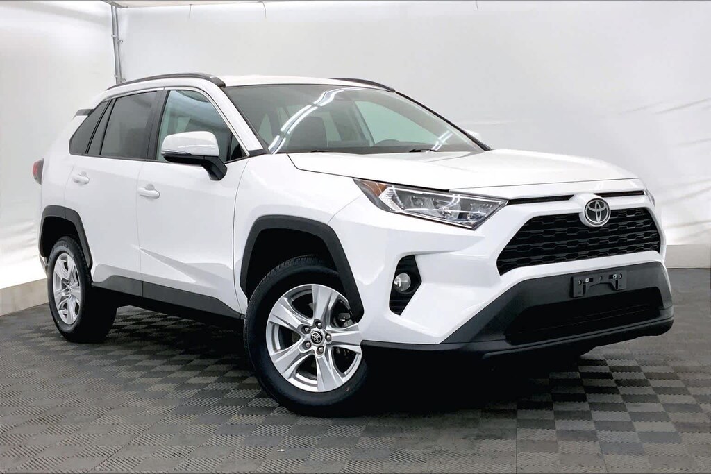 CARFAX ONE OWNER!!!!! Clean CARFAX. White 2021 Toyota RAV4 XLE AWD 8-Speed Automatic 2.5L 4-Cylinder DOHC Dual VVT-i AWD, Black, 4-Wheel Disc Brakes, 6 Speakers, ABS brakes, Air Conditioning, Alloy wheels, AM/FM radio: SiriusXM, AM/FM Stereo, Apple CarPlay/Android Auto, Auto High-beam Headlights, Automatic temperature control, Axle Ratio: 3.177, Brake assist, Bumpers: body-color, Delay-off headlights, Driver door bin, Driver vanity mirror, Dual front impact airbags, Dual front side impact airbags, Electronic Stability Control, Emergency communication system, Exterior Parking Camera Rear, Fabric Seat Trim, Four wheel independent suspension, Front anti-roll bar, Front Bucket Seats, Front Center Armrest, Front dual zone A/C, Front fog lights, Front reading lights, Fully automatic headlights, Heated door mirrors, Illuminated entry, Knee airbag, Low tire pressure warning, Occupant sensing airbag, Outside temperature display, Overhead airbag, Overhead console, Panic alarm, Passenger door bin, Passenger vanity mirror, Power door mirrors, Power driver seat, Power steering, Power windows, Radio data system, Rear anti-roll bar, Rear seat center armrest, Rear window defroster, Rear window wiper, Remote keyless entry, Roof rack: rails only, Speed control, Speed-sensing steering, Split folding rear seat, Spoiler, Steering wheel mounted audio controls, Tachometer, Telescoping steering wheel, Tilt steering wheel, Traction control, Trip computer, Turn signal indicator mirrors, Variably intermittent wipers, Wheels: 17 5-Spoke Silver Alloy, AWD, Black.