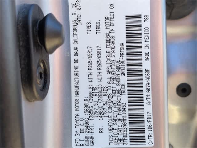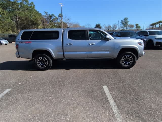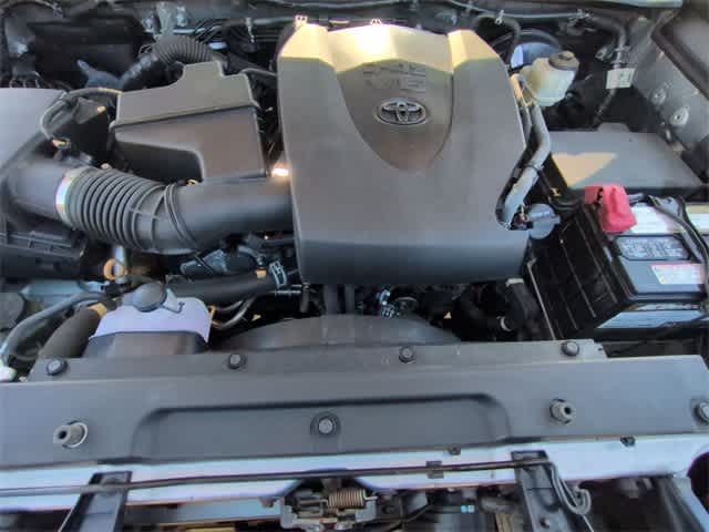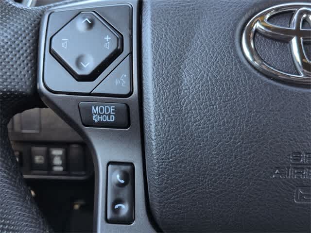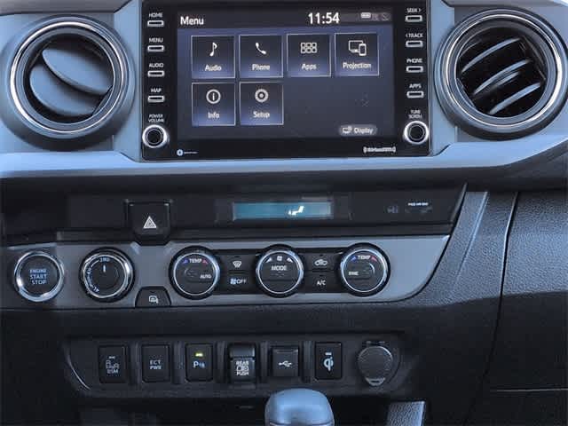 This 2021 Toyota Tacoma TRD Sport in Silver, features ABS brakes, Active Cruise Control, Air Conditioning, Alloy wheels, Automatic temperature control, Electronic Stability Control, Front dual zone A/C, Heated door mirrors, Illuminated entry, Low tire pressure warning, Remote keyless entry, Traction control, 120V/400W Deck Mounted AC Power, 6 Speakers, AM/FM radio: SiriusXM, Anti-whiplash front head restraints, Apple CarPlay/Android Auto, Auto High-beam Headlights, Auto-dimming Rear-View mirror, Auto-Dimming Rearview Mirror w/HomeLink, Axle Ratio: 3.91, Brake assist, Bumpers: body-color, Color-Keyed Rear Bumper, Driver door bin, Dual front impact airbags, Dual front side impact airbags, Emergency communication system: Safety Connect with 1-year trial, Engine Immobilizer, Exterior Parking Camera Rear, Fabric Seat Trim (FD), Front anti-roll bar, Front Bucket Seats, Front Center Armrest, Front fog lights, Front reading lights, Front Seats, Front wheel independent suspension, Knee airbag, Leather Shift Knob, Occupant sensing airbag, Outside temperature display, Overhead airbag, Overhead console, Panic alarm, Passenger door bin, Power door mirrors, Power driver seat, Power steering, Power windows, Radio: AM/FM Radio, Rear step bumper, Security system, Smart Key w/Push Button Start, Speed control, Speed-sensing steering, Split folding rear seat, Steering wheel mounted audio controls, Tachometer, Telescoping steering wheel, Tilt steering wheel, Trip computer, Turn signal indicator mirrors, Variably intermittent wipers, and Wheels: 17 x 7.5J Machined Alloy: