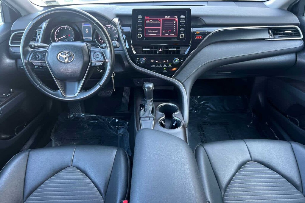 Silver 2022 Toyota Camry SE FWD 8-Speed Automatic 2.5L I4 DOHC 16V Cloth, ABS brakes, Active Cruise Control, Alloy wheels, Electronic Stability Control, Front dual zone A/C, Heated door mirrors, Illuminated entry, Low tire pressure warning, Remote keyless entry, Traction control.
