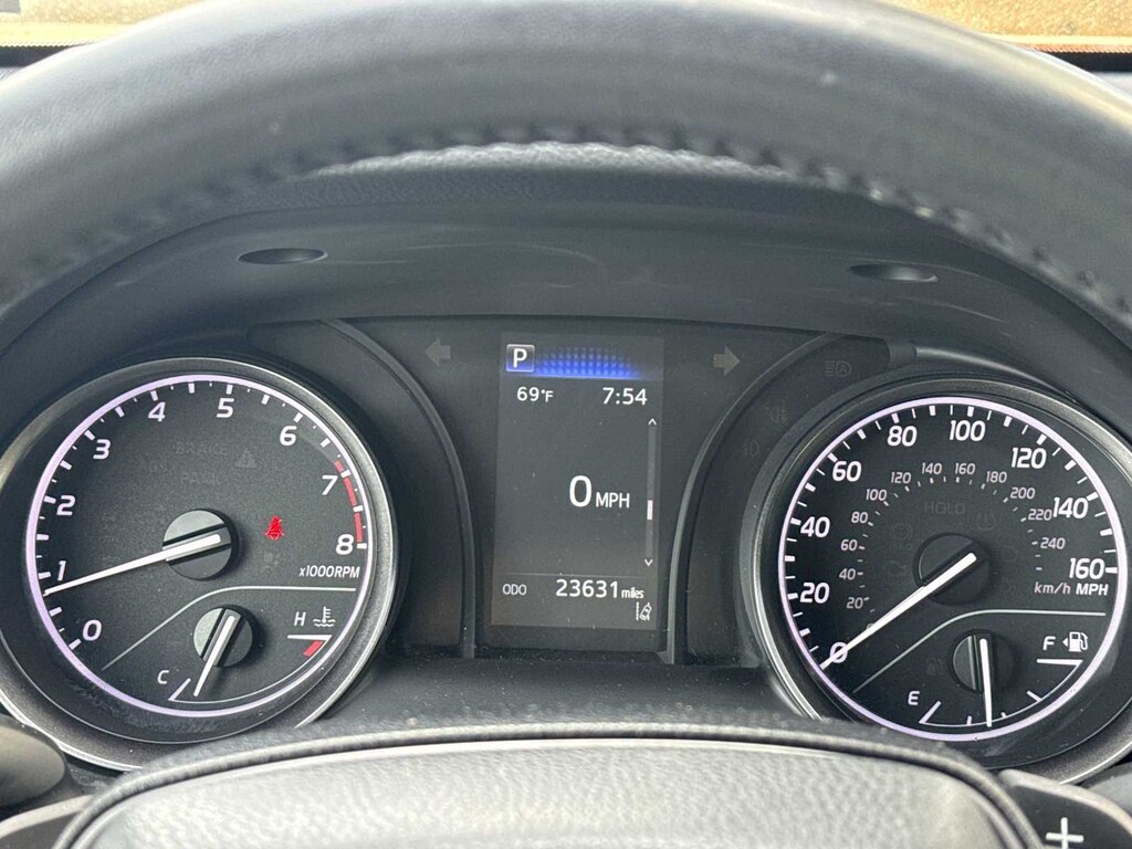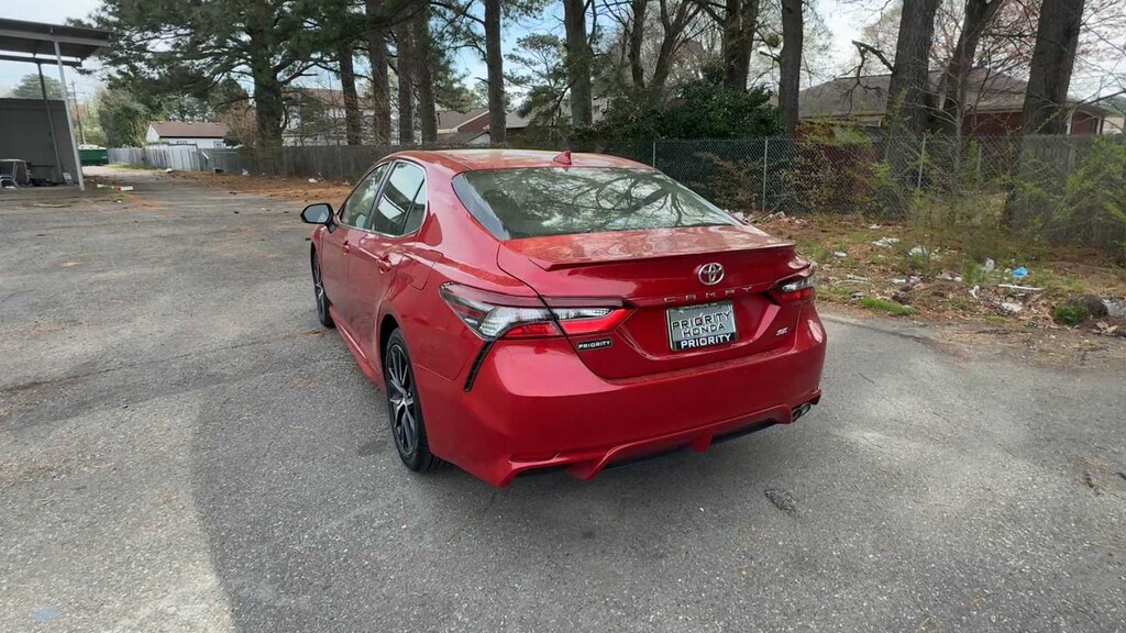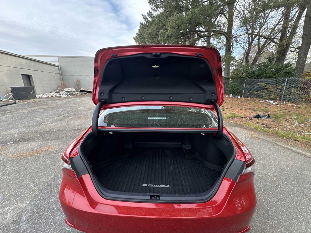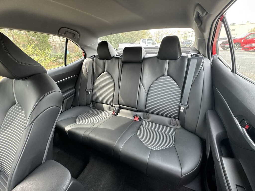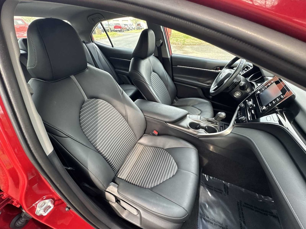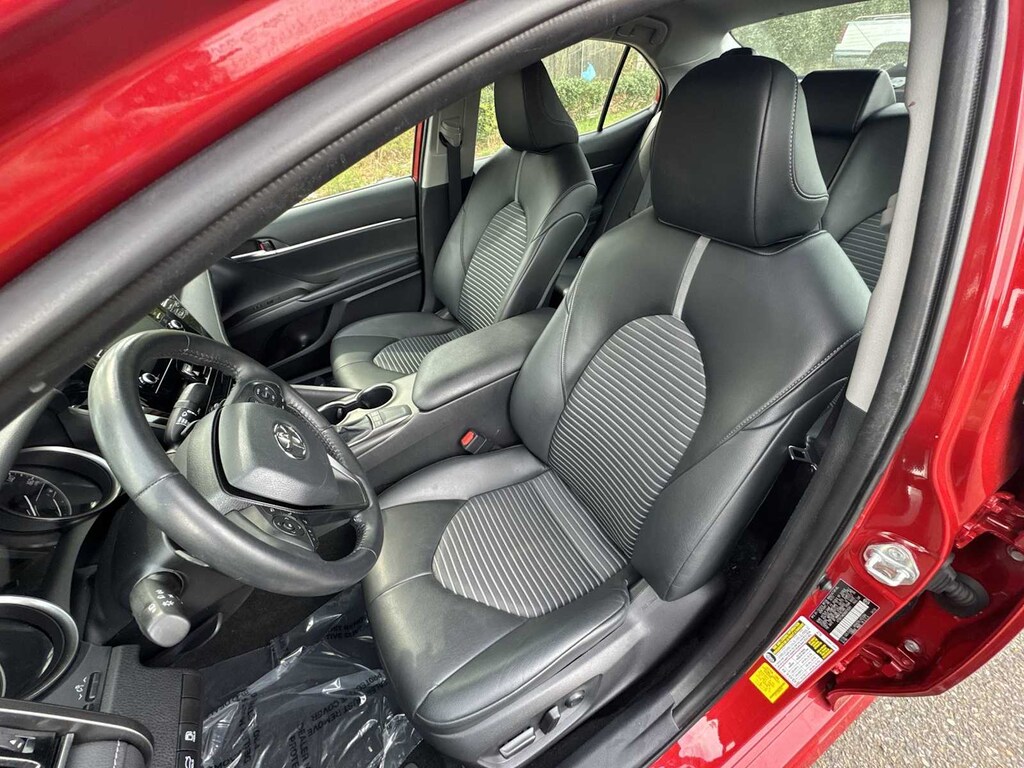 Camry SE is nicely equipped with Camry SE, 4D Sedan, 2.5L I4 DOHC 16V, 8-Speed Automatic, FWD, ABS brakes, Active Cruise Control, Alloy wheels, Electronic Stability Control, Front dual zone A/C, Heated door mirrors, Illuminated entry, Low tire pressure warning, Remote keyless entry, Traction control, 4-Wheel Disc Brakes, 6 Speakers, Air Conditioning, AM/FM radio: SiriusXM, Apple CarPlay/Android Auto, Auto High-beam Headlights, Automatic temperature control, Brake assist, Bumpers: body-color, Delay-off headlights, Driver door bin, Driver vanity mirror, Dual front impact airbags, Dual front side impact airbags, Emergency communication system: Safety Connect with 1-year trial, Exterior Parking Camera Rear, Fabric Seat Trim w/Sport SofTex, Four wheel independent suspension, Front anti-roll bar, Front Bucket Seats, Front Center Armrest, Front reading lights, Fully automatic headlights, Knee airbag, Occupant sensing airbag, Outside temperature display, Overhead airbag, Overhead console, Panic alarm, Passenger door bin, Passenger vanity mirror, Power door mirrors, Power driver seat, Power steering, Power windows, Radio data system, Radio: AM/FM Audio System, Rear anti-roll bar, Rear seat center armrest, Rear side impact airbag, Rear window defroster, Security system, Speed control, Speed-sensing steering, Split folding rear seat, Spoiler, Steering wheel mounted audio controls, Tachometer, Telescoping steering wheel, Tilt steering wheel, Trip computer, Turn signal indicator mirrors, Variably intermittent wipers, and Wheels: 8.0J x 18 Black Machined-Finish Alloy.