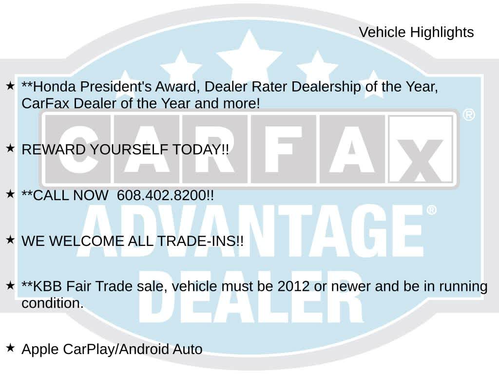 **Happy New Year!! Make your New Years Resolution to Spoil yourself with a New Car!!! To Celebrate were running $1000 over KBB Trade-in!! Stop in for your New or Used Honda, or anything in between and see why were Dealerrater Dealer of the Year! Honda Presidents Award Dealer, and Carfax Dealer of the year, come see for yourself why were rated one of Madisons Best and rated a 4.8/5 on 5000 reviews on Cars.com!!! Also Have Corporate discounts available, see a sales associate for details.
