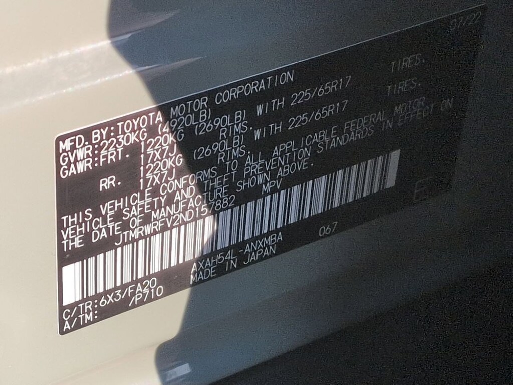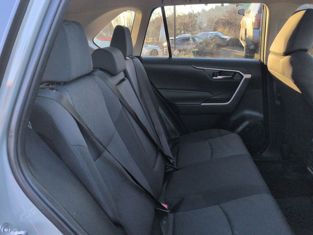 2.5L 4-Cylinder, 4-Wheel Disc Brakes, 6 Speakers, ABS brakes, Air Conditioning, Alloy wheels, AM/FM radio: SiriusXM, AM/FM Stereo, Apple CarPlay/Android Auto, Auto High-beam Headlights, Automatic temperature control, Axle Ratio: TBD, Brake assist, Bumpers: body-color, Delay-off headlights, Driver door bin, Driver vanity mirror, Dual front impact airbags, Dual front side impact airbags, Electronic Stability Control, Emergency communication system: Safety Connect with 1-year trial, Exterior Parking Camera Rear, Fabric Seat Trim (FA), Four wheel independent suspension, Front anti-roll bar, Front Bucket Seats, Front Center Armrest, Front dual zone A/C, Front fog lights, Front reading lights, Front Sport Seats, Fully automatic headlights, Heated door mirrors, Illuminated entry, Knee airbag, Lane Departure Warning System, Low tire pressure warning, Occupant sensing airbag, Outside temperature display, Overhead airbag, Overhead console, Panic alarm, Passenger door bin, Passenger vanity mirror, Power door mirrors, Power driver seat, Power steering, Power windows, Radio data system, Rear anti-roll bar, Rear seat center armrest, Rear window defroster, Rear window wiper, Remote keyless entry, Roof rack: rails only, Speed control, Speed-sensing steering, Split folding rear seat, Spoiler, Steering wheel mounted audio controls, Telescoping steering wheel, Tilt steering wheel, Traction control, Trip computer, Turn signal indicator mirrors, Variably intermittent wipers, Wheels: 17 x 7.0J Silver Aluminum Alloy, 2.5L 4-Cylinder. 2022 Toyota RAV4 Hybrid XLE AWD eCVT 2.5L 4-Cylinder