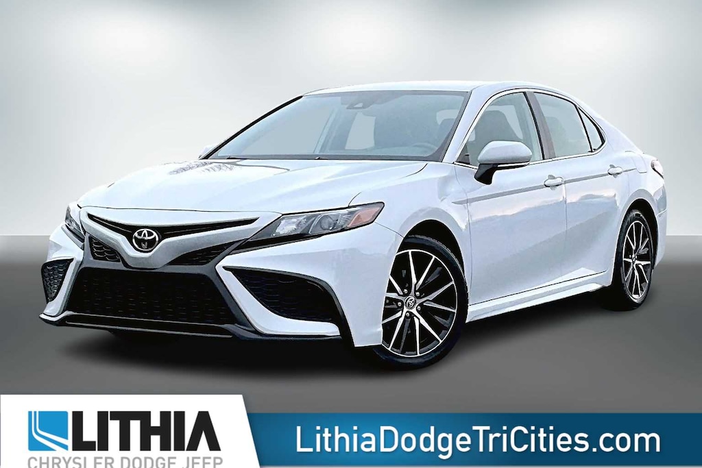 Lithia Chrysler Dodge Jeep Ram of Tri-Cities is pleased to offer this Gray 2023 Toyota Camry SE for purchase, this vehicle is well equipped with many features including:Blk/Black Artificial Leather, ABS brakes, Active Cruise Control, Alloy wheels, Electronic Stability Control, Front dual zone A/C, Heated door mirrors, Illuminated entry, Low tire pressure warning, Remote keyless entry, Traction control, 4-Wheel Disc Brakes, 6 Speakers, 8.0J x 18 Alloy Wheels, Air Conditioning, AM/FM radio: SiriusXM, Apple CarPlay/Android Auto, Auto High-beam Headlights, Automatic temperature control, Brake assist, Bumpers: body-color, Delay-off headlights, Driver door bin, Driver vanity mirror, Dual front impact airbags, Dual front side impact airbags, Emergency communication system: Safety Connect (1-year trial), Exterior Parking Camera Rear, Four wheel independent suspension, Front anti-roll bar, Front Bucket Seats, Front Center Armrest, Front reading lights, Fully automatic headlights, Knee airbag, Leather steering wheel, Occupant sensing airbag, Outside temperature display, Overhead airbag, Overhead console, Panic alarm, Passenger door bin, Passenger vanity mirror, Power door mirrors, Power driver seat, Power steering, Power windows, Radio data system, Radio: Audio, Rear anti-roll bar, Rear seat center armrest, Rear side impact airbag, Rear window defroster, Security system, Speed control, Speed-sensing steering, Split folding rear seat, Spoiler, Sport SofTex Seat Trim w/Fabric Inserts, Steering wheel mounted audio controls, Tachometer, Telescoping steering wheel, Tilt steering wheel, Trip computer, Turn signal indicator mirrors, and Variably intermittent wipers. 2023 Toyota Camry SE Blk/Black Artificial Leather, ABS brakes, Active Cruise Control, Alloy wheels, Electronic Stability Control, Front dual zone A/C, Heated door mirrors, Illuminated entry, Low tire pressure warning, Remote keyless entry, Traction control.