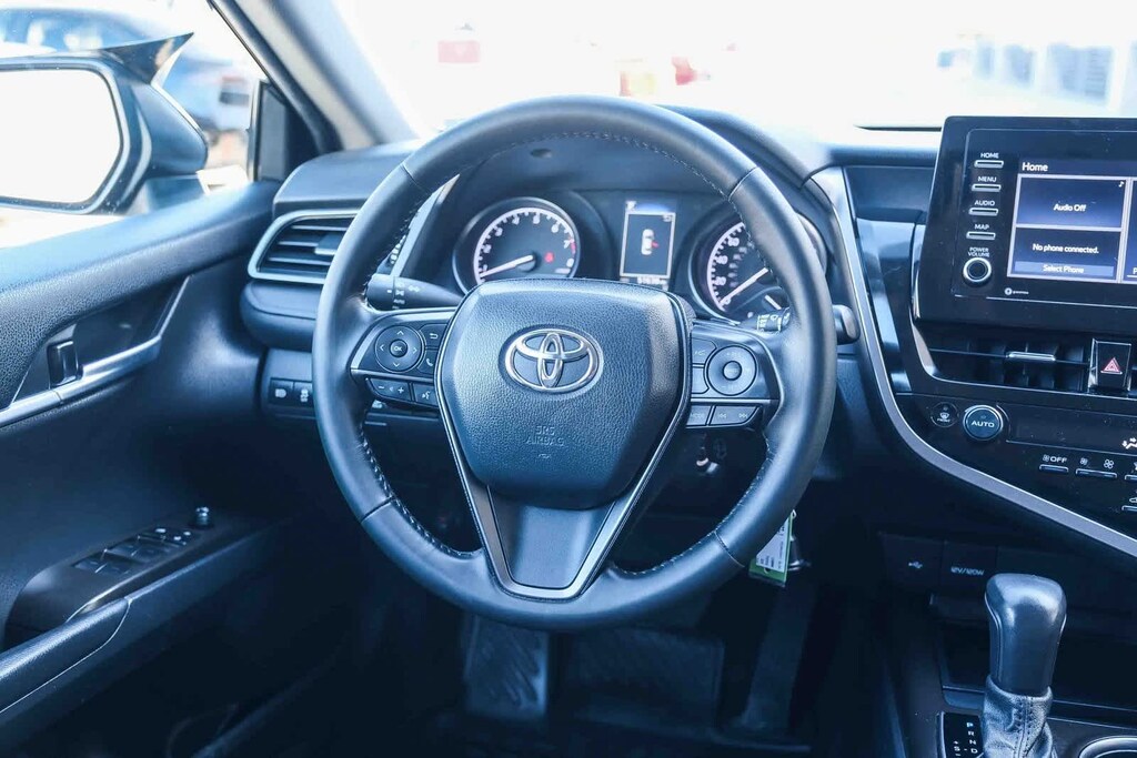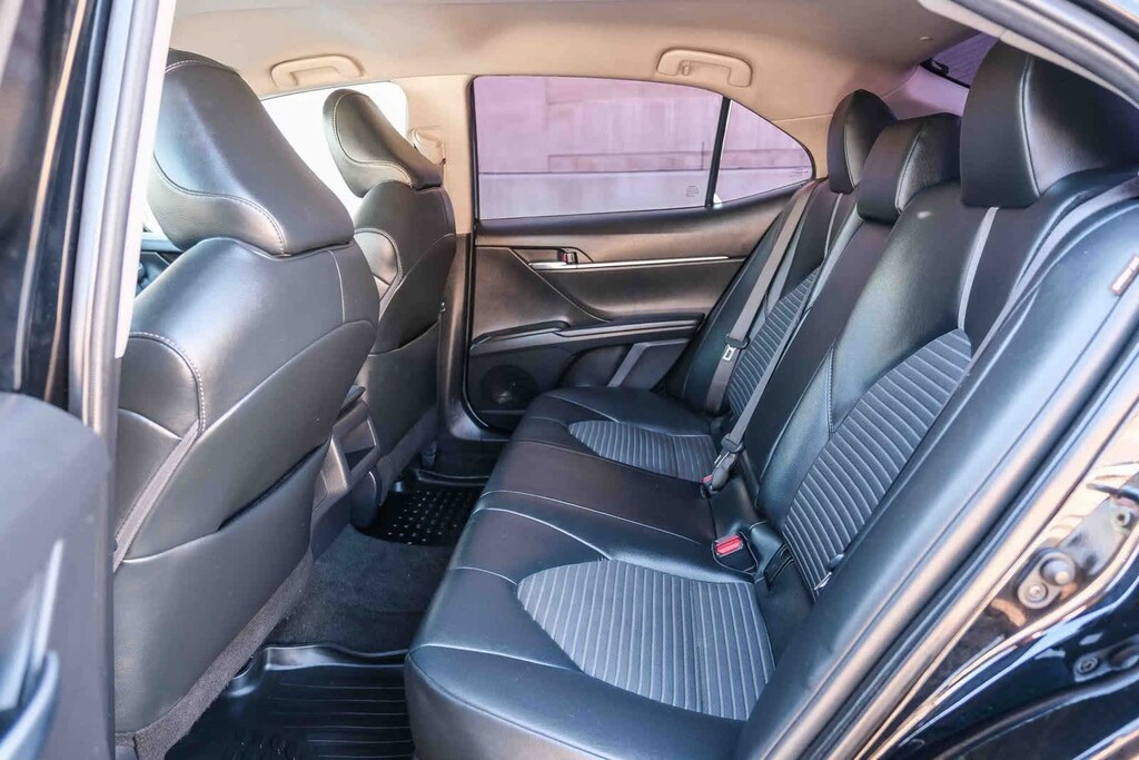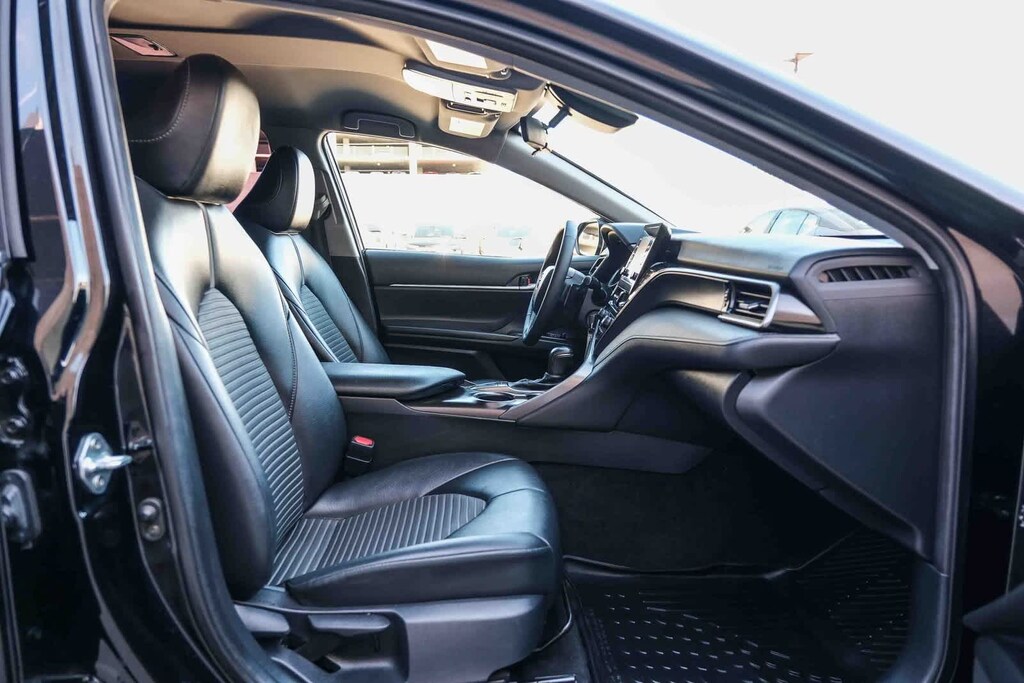 WELCOME TO TOYOTA OF DOWNTOWN LA... 2023 Toyota Camry SE Midnight Black Metallic FWD 8-Speed Automatic 2.5L I4 DOHC 16V Black w/Fabric Seat Trim, 6 Speakers, 8.0J x 18 Alloy Wheels, AM/FM radio: SiriusXM, Apple CarPlay/Android Auto, Exterior Parking Camera Rear, Power driver seat, Power steering, Power windows, Radio data system, Radio: Audio, Remote keyless entry, Spoiler, Steering wheel mounted audio controls. 28/39 City/Highway MPG Clean CARFAX.