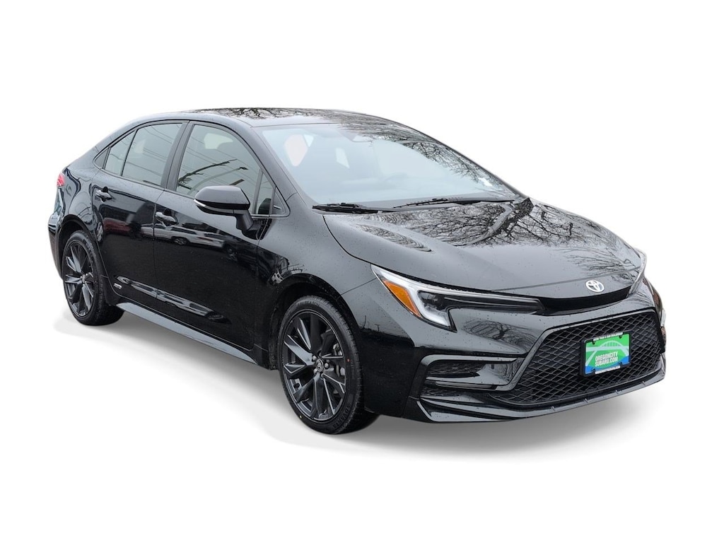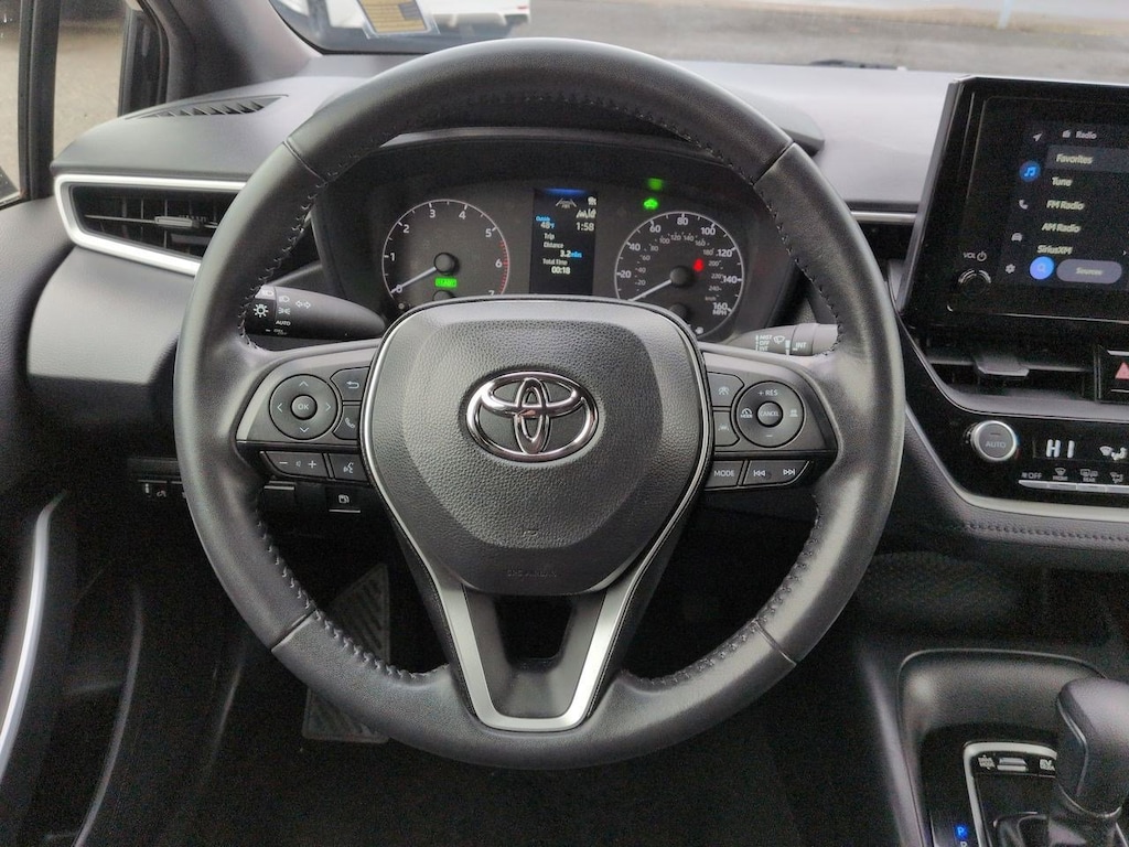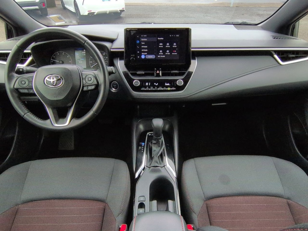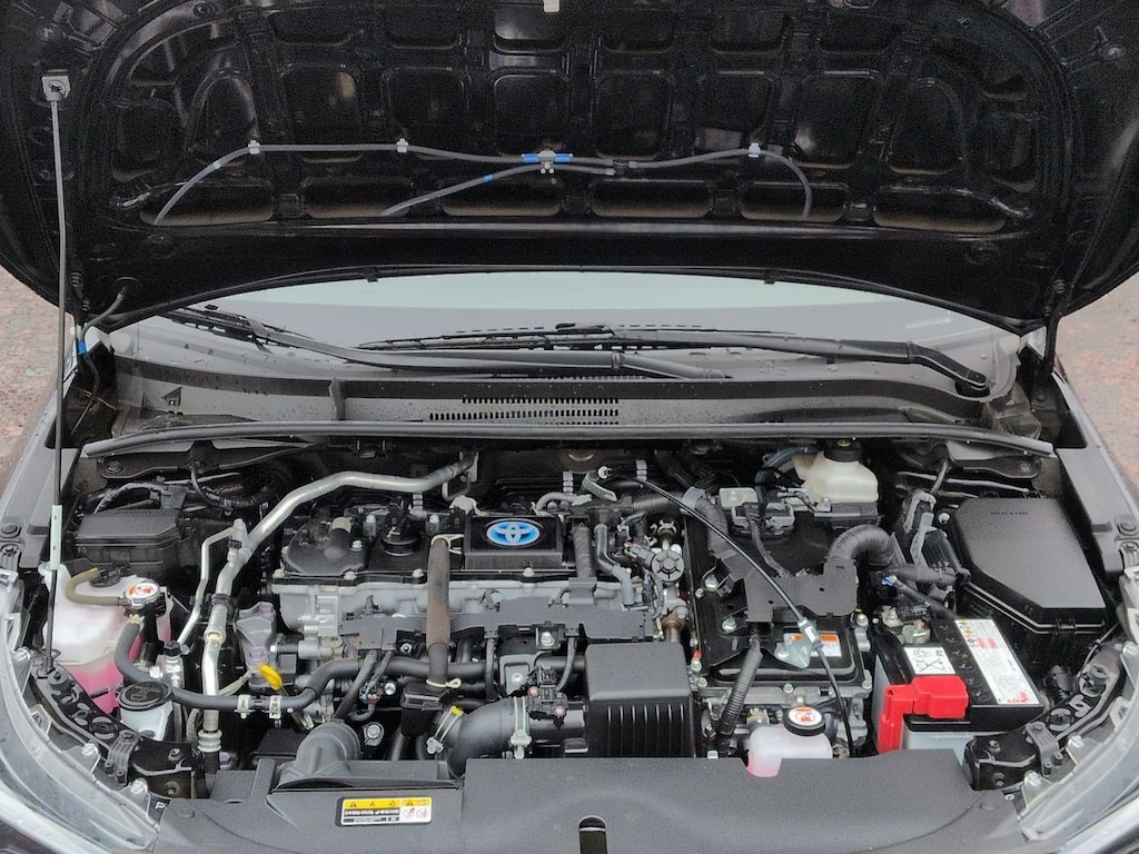 1.8L DOHC 16V VVT, 4-Wheel Disc Brakes, 6 Speakers, ABS brakes, Air Conditioning, Alloy wheels, AM/FM radio: SiriusXM, Auto High-beam Headlights, Automatic temperature control, Brake assist, Bumpers: body-color, Delay-off headlights, Driver door bin, Driver vanity mirror, Dual front impact airbags, Dual front side impact airbags, Electronic Stability Control, Emergency communication system: Safety Connect (up to 10-year trial subscription), Exterior Parking Camera Rear, Fabric Seat Trim, Four wheel independent suspension, Front anti-roll bar, Front Bucket Seats, Front Center Armrest, Front reading lights, Fully automatic headlights, Heated door mirrors, Illuminated entry, Knee airbag, Low tire pressure warning, Occupant sensing airbag, Outside temperature display, Overhead airbag, Panic alarm, Passenger door bin, Passenger vanity mirror, Power door mirrors, Power steering, Power windows, Premium Front Sport Seats, Radio data system, Radio: 8 Toyota Audio Multimedia, Rear anti-roll bar, Rear seat center armrest, Rear side impact airbag, Rear window defroster, Remote keyless entry, Speed control, Split folding rear seat, Spoiler, Steering wheel mounted audio controls, Tachometer, Telescoping steering wheel, Tilt steering wheel, Traction control, Trip computer, Turn signal indicator mirrors, Variably intermittent wipers, 1.8L DOHC 16V VVT. 2023 Toyota Corolla Hybrid SE AWD CVT 1.8L DOHC 16V VVT