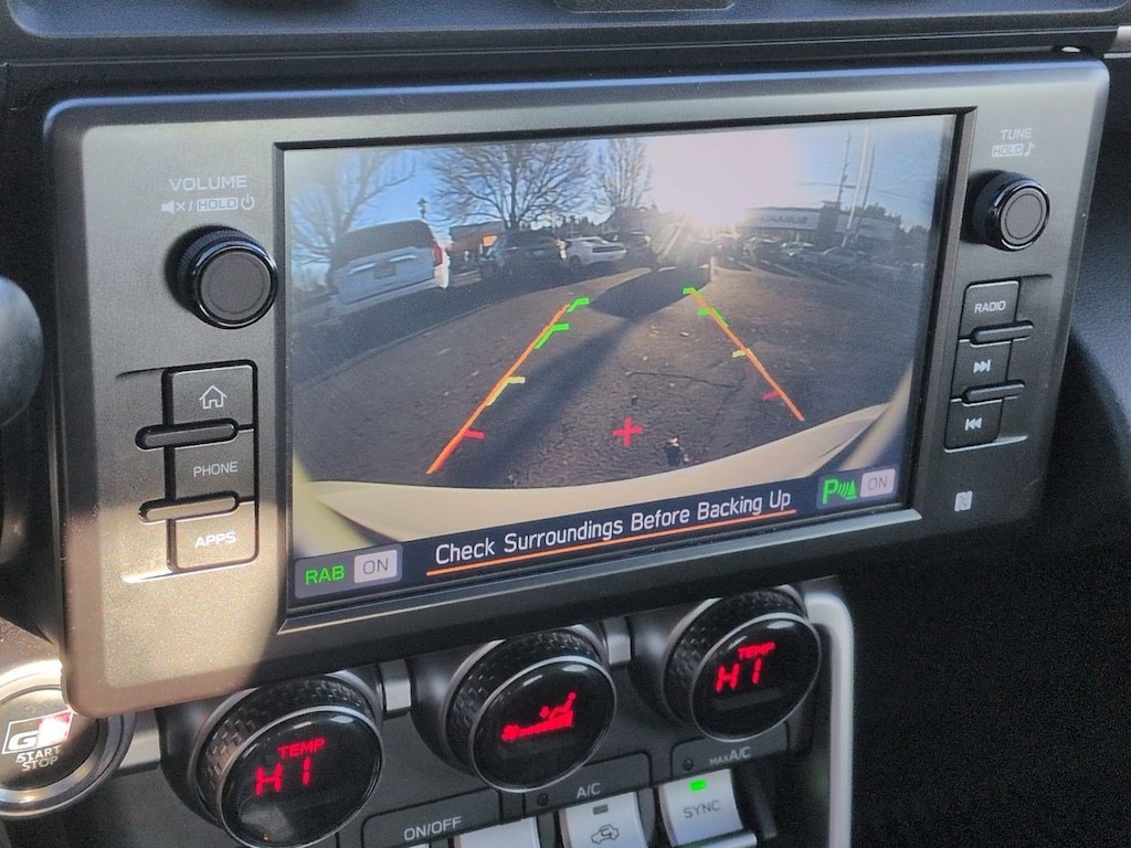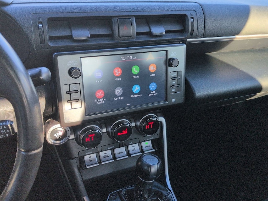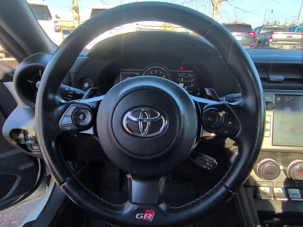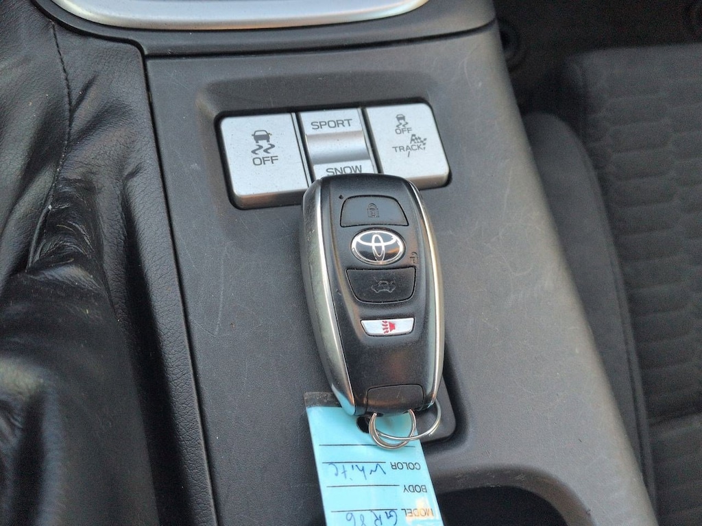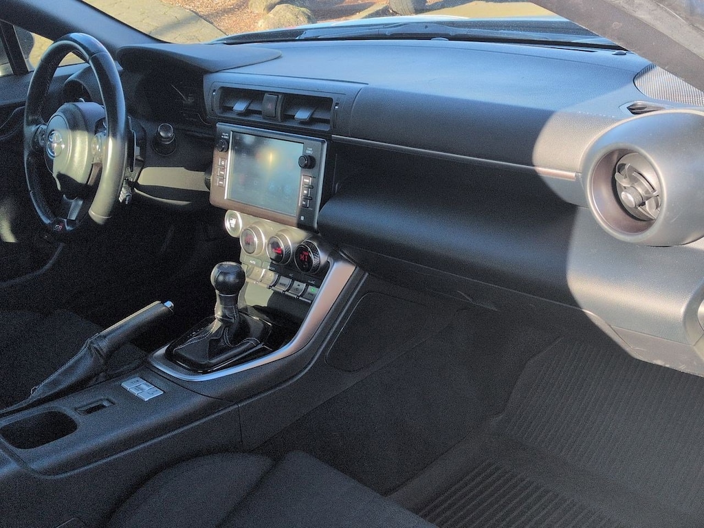 4-Wheel Disc Brakes, 6 Speakers, ABS brakes, Air Conditioning, Alloy wheels, AM/FM radio: SiriusXM, Apple CarPlay/Android Auto, Auto High-beam Headlights, Automatic temperature control, Brake assist, Bumpers: body-color, Delay-off headlights, Driver door bin, Driver vanity mirror, Dual front impact airbags, Dual front side impact airbags, Electronic Stability Control, Emergency communication system: Safety Connect (1-year trial), Exterior Parking Camera Rear, Fabric Seat Trim, Four wheel independent suspension, Front anti-roll bar, Front Bucket Seats, Front dual zone A/C, Front reading lights, Fully automatic headlights, Heated door mirrors, Illuminated entry, Knee airbag, Leather Shift Knob, Leather steering wheel, Low tire pressure warning, Occupant sensing airbag, Outside temperature display, Overhead airbag, Panic alarm, Passenger door bin, Passenger vanity mirror, Power door mirrors, Power steering, Power windows, Radio data system, Radio: AM/FM/HD Audio System, Rear anti-roll bar, Rear window defroster, Remote keyless entry, Security system, Speed control, Sport Bucket Seats, Steering wheel mounted audio controls, Tachometer, Telescoping steering wheel, Tilt steering wheel, Traction control, Trip computer, Variably intermittent wipers, Wheels: 7.5 x 17 10-Spoke Machine Finish Alloy. 2023 Toyota GR86 RWD 6-Speed Automatic ECT-i 2.4L I4 DOHC