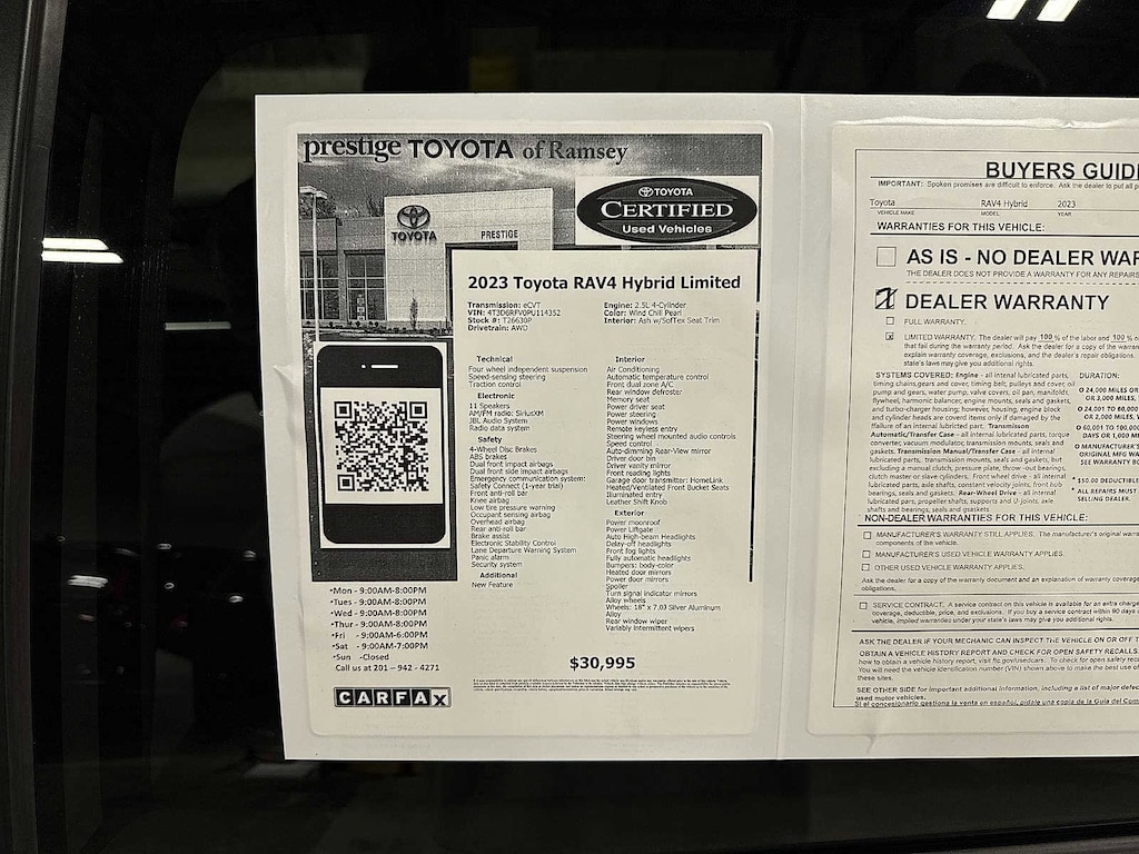 RAV4 Hybrid Limited, 4D Sport Utility, 2.5L 4-Cylinder, eCVT, AWD, Wind Chill Pearl, Ash w/SofTex Seat Trim. CARFAX One-Owner. Wind Chill Pearl 2023 Toyota RAV4 Hybrid Limited AWD eCVT 2.5L 4-Cylinder