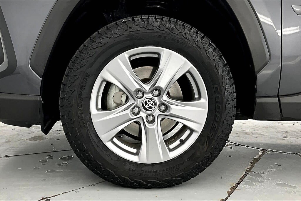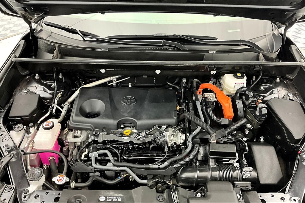 Convenience Package (Front Door Smart Key System w/Push Button Start and Tilt & Slide Moon Roof), XLE Grade Weather Package (Front Seat Heating and Heated 3-Spoke Leather Steering Wheel), RAV4 Hybrid XLE, AWD, 4-Wheel Disc Brakes, 6 Speakers, ABS brakes, Air Conditioning, All Weather Floor Liners & Cargo Tray (TMS), Alloy wheels, AM/FM radio: SiriusXM, Auto High-beam Headlights, Automatic temperature control, Axle Ratio: TBD, Black Chrome Exhaust Tip (TMS), Body Side Molding (TMS), Brake assist, Bumpers: body-color, Delay-off headlights, Door Edge Guard (TMS), Driver door bin, Driver vanity mirror, Dual front impact airbags, Dual front side impact airbags, Electronic Stability Control, Emergency communication system: Safety Connect (1-year trial), Exterior Parking Camera Rear, Fabric Seat Trim, First Aid Kit (TMS), Fog Light Accent (TMS), Four wheel independent suspension, Front anti-roll bar, Front Bucket Seats, Front Center Armrest, Front dual zone A/C, Front reading lights, Front Sport Seats, Fully automatic headlights, Heated door mirrors, Illuminated entry, Knee airbag, Lane Departure Warning System, Low tire pressure warning, Occupant sensing airbag, Outside temperature display, Overhead airbag, Overhead console, Panic alarm, Passenger door bin, Passenger vanity mirror, Power door mirrors, Power driver seat, Power steering, Power windows, Radio data system, Radio: AM/FM/XM Audio System, Rear anti-roll bar, Rear seat center armrest, Rear window defroster, Rear window wiper, Remote keyless entry, Speed control, Speed-sensing steering, Split folding rear seat, Spoiler, Steering wheel mounted audio controls, Telescoping steering wheel, Tilt steering wheel, Traction control, Trip computer, Turn signal indicator mirrors, Variably intermittent wipers, and Wheels: 17 x 7.0J Silver Aluminum Alloy. Local Trade, New Tires, RAV4 Hybrid XLE, AWD, Convenience Package, Front Door Smart Key System w/Push Button Start, Front Seat Heating, Heated 3-Spoke Leather Steering Wheel, Tilt & Slide Moon Roof, XLE Grade Weather Package.