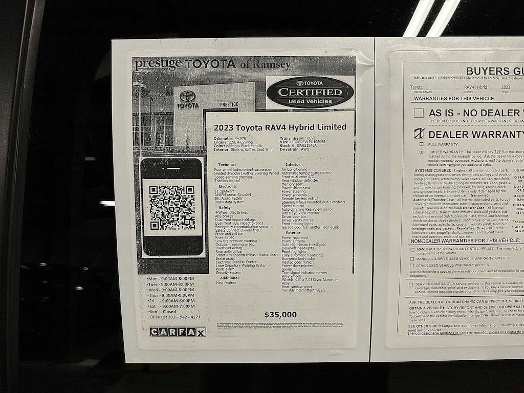 This 2023 Toyota RAV4 Hybrid Limited will not make it to the weekend!! CALL NOW to reserve your test drive!! (844) 838-7075 Please Visit www.PrestigeToyota.com for further details. Price does not include licensing costs, registration fees, taxes and dealer doc fee of $999 which are to be paid by the consumer.