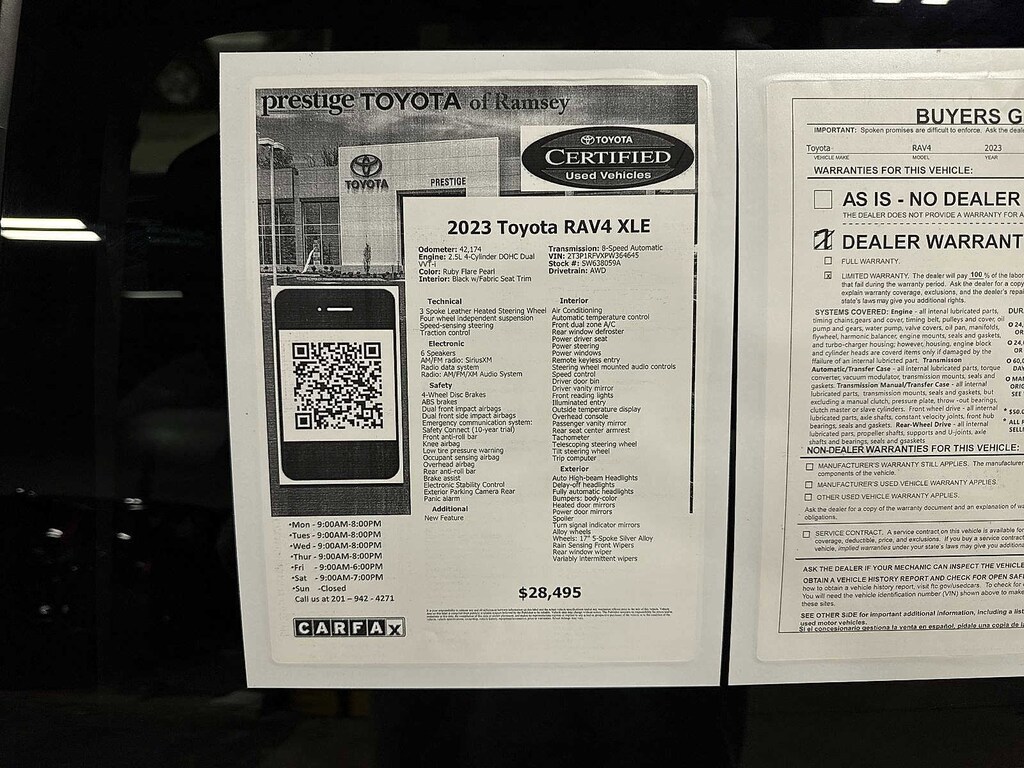 RAV4 XLE, 4D Sport Utility, 2.5L 4-Cylinder DOHC Dual VVT-i, 8-Speed Automatic, AWD, Ruby Flare Pearl, 3 Spoke Leather Heated Steering Wheel, Front Seat Heating, Rain Sensing Front Wipers, XLE Grade Weather Package. CARFAX One-Owner. Ruby Flare Pearl 2023 Toyota RAV4 XLE AWD 8-Speed Automatic 2.5L 4-Cylinder DOHC Dual VVT-i