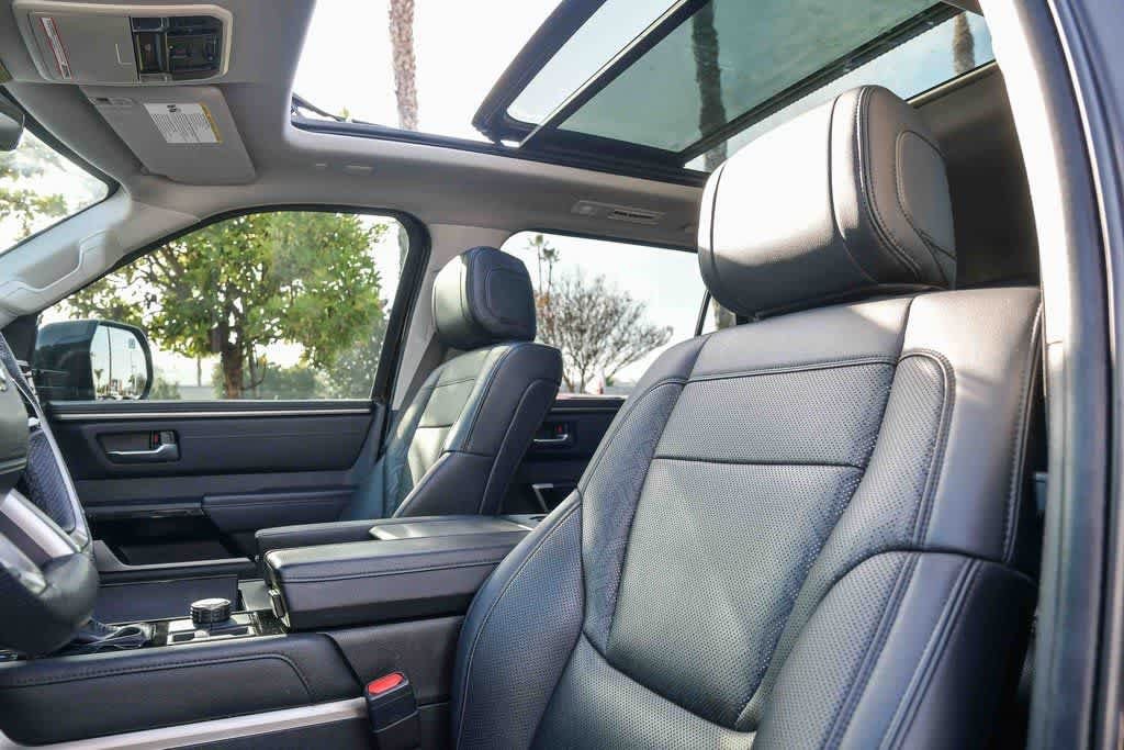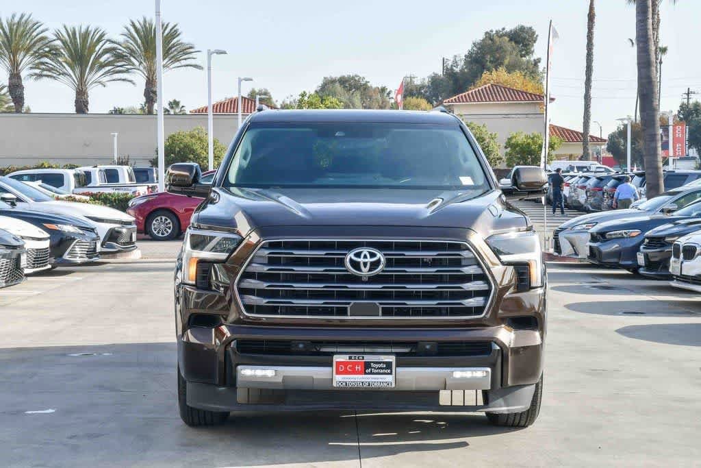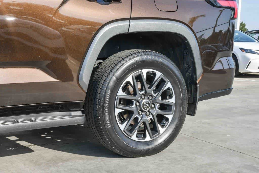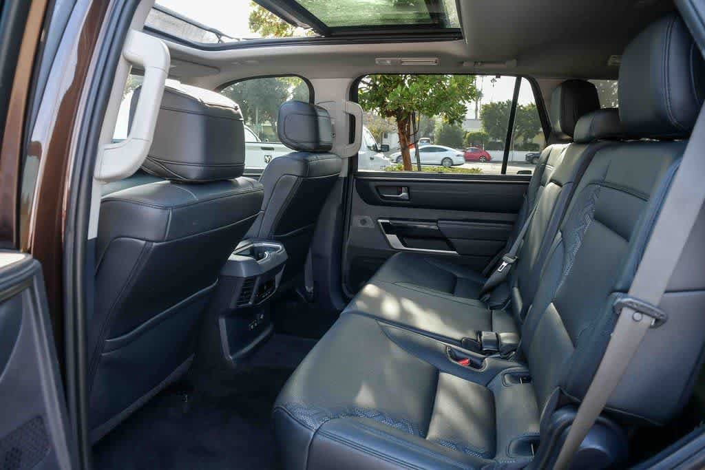 Smoked Mesquite 2023 Toyota Sequoia Limited 4WD 10-Speed Automatic V6 Hybrid 3rd row seats: split-bench, 4-Wheel Disc Brakes, 8 Speakers, Alloy wheels, AM/FM radio: SiriusXM, Anti-whiplash front head restraints, Apple CarPlay/Android Auto, Auto-dimming door mirrors, Auto-dimming Rear-View mirror, Automatic temperature control, Brake assist, Bumpers: body-color, Driver door bin, Driver vanity mirror, Dual front impact airbags, Dual front side impact airbags, Electronic Stability Control, Emergency communication system: Safety Connect (10-year trial), Front anti-roll bar, Front Bucket Seats, Front Center Armrest w/Storage, Front dual zone A/C, Front wheel independent suspension, Garage door transmitter: HomeLink, Heated & Ventilated Front Seats, Heated door mirrors, Heated front seats, Heated steering wheel, Illuminated entry, Knee airbag, Leather Shift Knob, Leather steering wheel, Memory seat, Navigation system: Drive Connect (1 year trial) includes Cloud Navigation with real time traffic and Google POI, Occupant sensing airbag, Overhead airbag, Overhead console, Panic alarm, Passenger door bin, Passenger vanity mirror, Power door mirrors, Power driver seat, Power Liftgate, Power passenger seat, Power Tilt/Slide Panoramic Roof w/Power Sunshade, Radio: Toyota Multimedia w/14 Display, Rear air conditioning, Rear seat center armrest, Reclining 3rd row seat, Remote keyless entry, Security system, SofTex Seat Trim, Speed control, Speed-sensing steering, Split folding rear seat, Spoiler, Steering wheel mounted audio controls, Telescoping steering wheel, Tilt steering wheel, Turn signal indicator mirrors, Ventilated front seats, Wheels: 20 Machined-Finish Alloy.