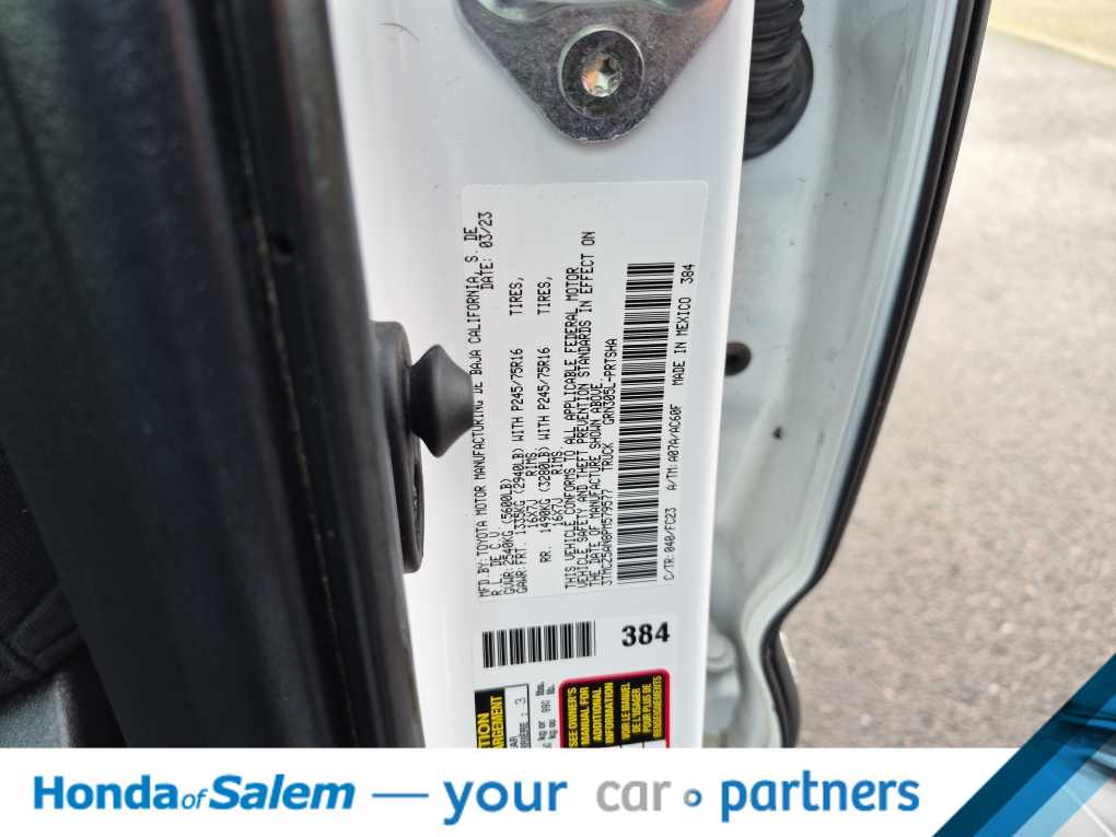 PREDATOR TUBE STEPS (TMS), ALL WEATHER FLOOR LINER & DOOR SILL PROTECTOR (TMS). Toyota SR5 with Ice Cap exterior and Black/Red interior features a V6 Cylinder Engine with 278 HP at 6000 RPM*.