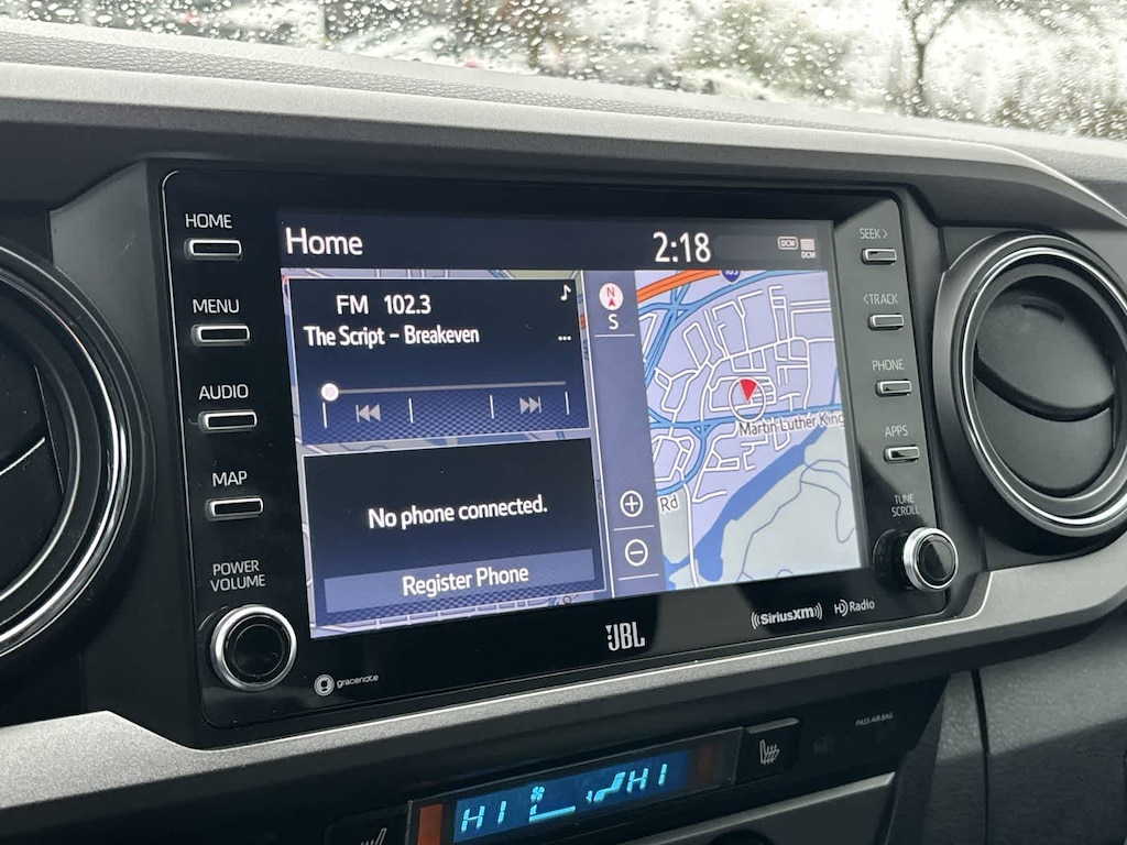 TRD PREMIUM SPORT PACKAGE leather shift lever and knob and Sport graphic, Radio: Premium JBL Audio w/Dynamic Navigation, Clari-Fi, 6 speakers, subwoofer and amplifier, 8 touchscreen, HD Radio, Dynamic Navigation, Dynamic POI Search, Dynamic Voice Recognition, hands-free phone capability and music streaming via Bluetooth® wireless technology, Android Auto®, Apple CarPlay® and Amazon Alexa compatible, SiriusXM w/3-month all access trial and Connected Services (Safety Connect, Service Connect w/10-year trial, Remote Connect, Wi-Fi Connect w/up to 2 GB within 3-month trial and Destination Assist ), See toyota.com/audio-multimedia for details, Power Tilt/Slide Moonroof, sliding sunshade, Heated Front Seats, Auto Headlights, TECHNOLOGY PACKAGE Rear Parking Assist Sonar, Blind Spot Monitor w/Rear Cross Traffic Alert, Lane Change Assist, Mesh Front Grille, LED HEADLIGHTS W/BLACK BEZEL LED FOG LIGHTS LED daytime running lights, ALL WEATHER FLOOR LINER & DOOR SILL PROTECTOR (TMS). Toyota TRD Sport with Lunar Rock exterior and Black/Gunmetal interior features a V6 Cylinder Engine with 278 HP at 6000 RPM*.