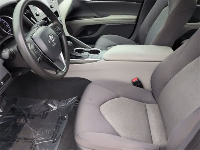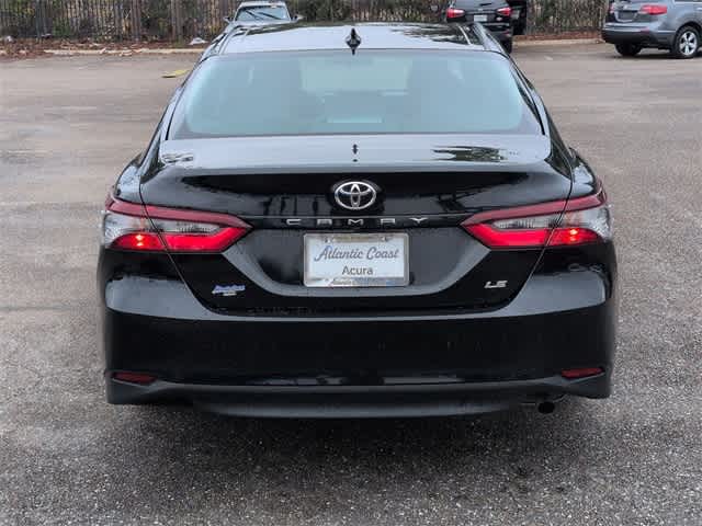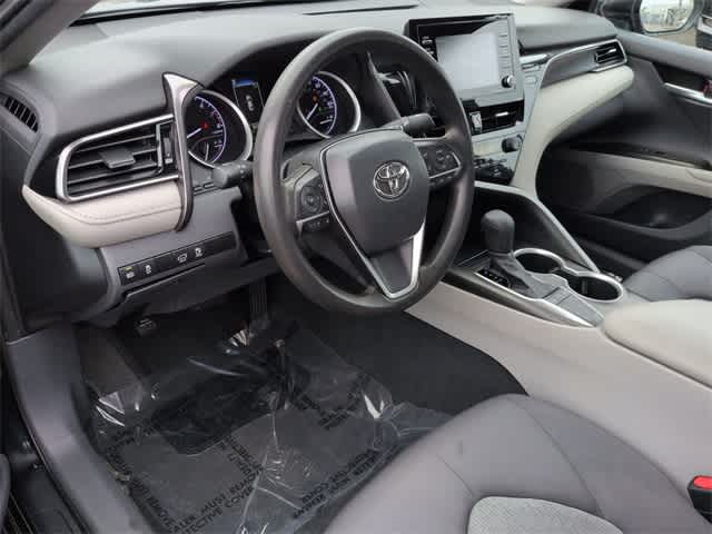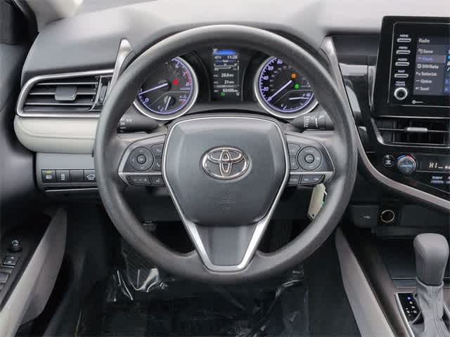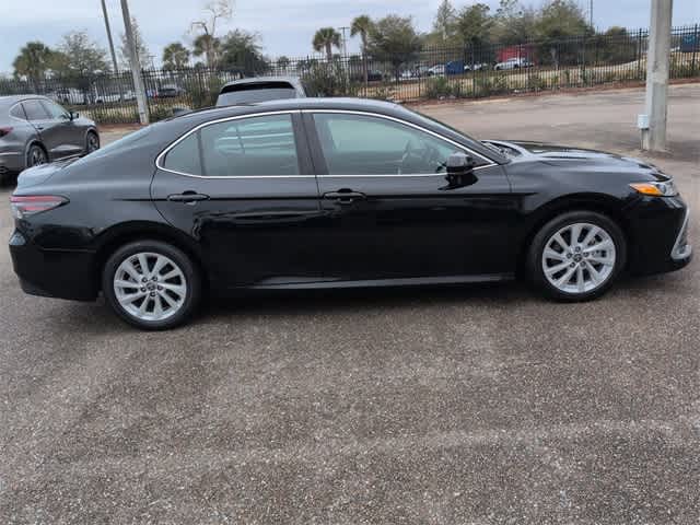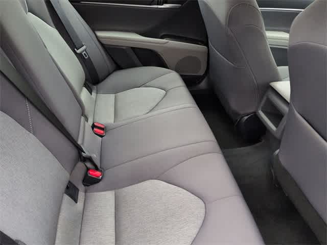 This 2024 Toyota Camry LE in Black, features 4-Wheel Disc Brakes, 6 Speakers, ABS brakes, Air Conditioning, Alloy wheels, AM/FM radio: SiriusXM, Apple CarPlay/Android Auto, Auto High-beam Headlights, Automatic temperature control, Brake assist, Bumpers: body-color, Delay-off headlights, Driver door bin, Driver vanity mirror, Dual front impact airbags, Dual front side impact airbags, Electronic Stability Control, Emergency communication system: Safety Connect (1-year trial), Exterior Parking Camera Rear, Fabric Seat Trim, Four wheel independent suspension, Front anti-roll bar, Front Bucket Seats, Front Center Armrest, Front dual zone A/C, Front reading lights, Fully automatic headlights, Illuminated entry, Knee airbag, Low tire pressure warning, Occupant sensing airbag, Outside temperature display, Overhead airbag, Overhead console, Panic alarm, Passenger door bin, Passenger vanity mirror, Power door mirrors, Power driver seat, Power steering, Power windows, Radio data system, Radio: Audio, Rear anti-roll bar, Rear seat center armrest, Rear side impact airbag, Rear window defroster, Remote keyless entry, Security system, Speed control, Speed-sensing steering, Split folding rear seat, Steering wheel mounted audio controls, Tachometer, Telescoping steering wheel, Tilt steering wheel, Traction control, Trip computer, Variably intermittent wipers, and Wheels: 17 x 7.5J Alloy: