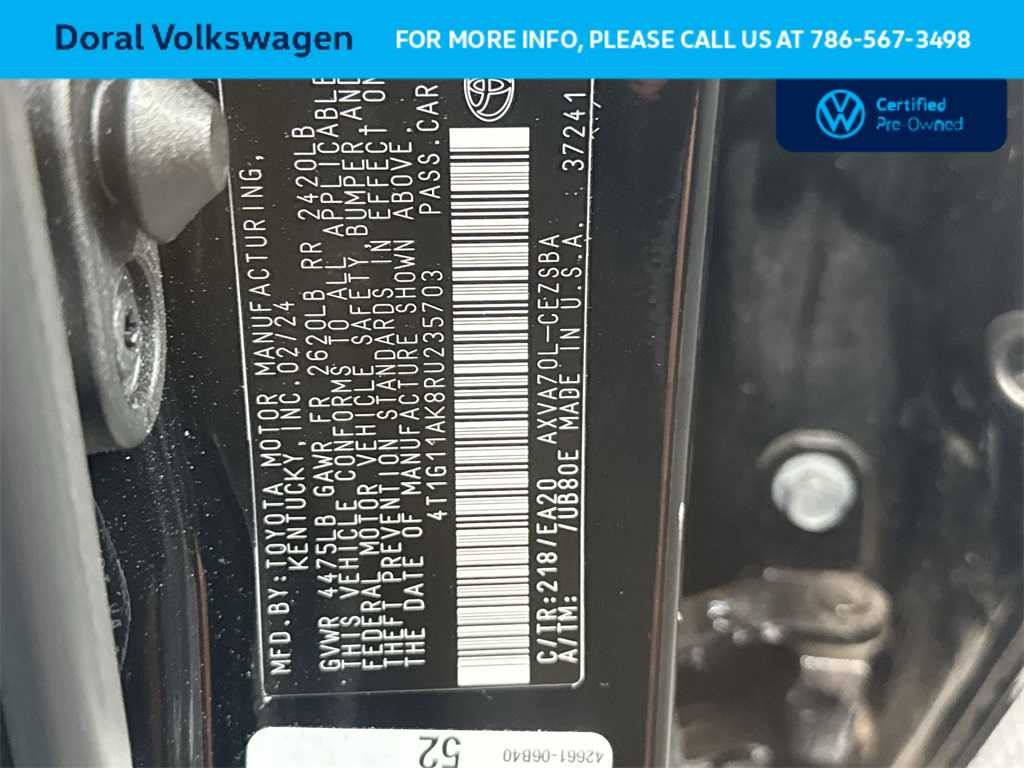 ALL INVENTORY IS ON MIAMI NOT TAMPA. BUY WITH CONFIDENCE! WE LOVE TRADES! HASSLE FREE FINANCE PLANS FOR EVERYONE! PLEASE CALL TO ENSURE AVAILABILITY AS OUR INVENTORY CHANGES BY THE HOUR. AFFORDABLE FINANCE PLANS! EASY FINANCE OPTIONS! ALL INVENTORY IS READY FOR INSTANT DELIVERY! Odometer is 14517 miles below market average! NO ACCIDENTS OR ISSUES, COMPLETE 182 POINT MANUFACTURERS INSPECTION, FULL SERVICE PERFORMED, LOW MILES, NAVIGATION SYSTEM, BACK UP CAMERA, LOW PRICE AND A GREAT VALUE, LOOKS AND FEELS LIKE A NEW CAR, Black w/Sport SofTex Seat Trim w/Fabric Inserts, ABS brakes, Active Cruise Control, Alloy wheels, Electronic Stability Control, Front dual zone A/C, Heated door mirrors, Illuminated entry, Low tire pressure warning, Remote keyless entry, Traction control. Priced below KBB Fair Purchase Price! 28/39 City/Highway MPG Midnight Black Metallic 2024 Toyota Camry SE 2.5L I4 DOHC 16V