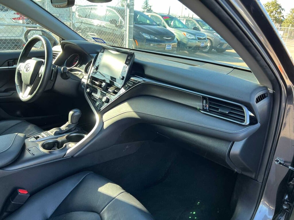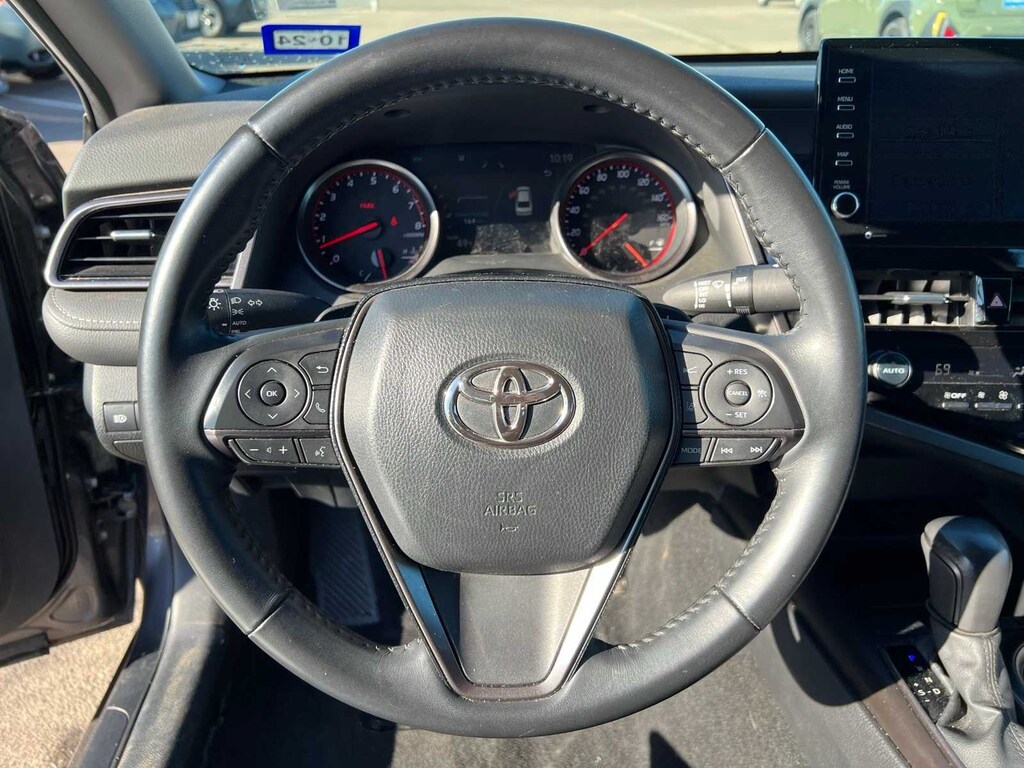 Predawn Gray Mica 2024 Toyota Camry XSE FWD 8-Speed Automatic 2.5L I4 DOHC 16V FRESH ENGINE and CABIN FILTERS, FRESH OIL CHANGE, 138 point Lithia inspected, DETAILED INTERIOR AND EXTERIOR FOR DELIVERY, CERTIFIED BY CARFAX - ONE OWNER, Multi Point Safety and Mechanical Inspection Performed by Certified Technician, Black w/Perforated Leather Seat Trim, 4-Wheel Disc Brakes, 6 Speakers, ABS brakes, Air Conditioning, AM/FM radio: SiriusXM, Apple CarPlay/Android Auto, Auto High-beam Headlights, Auto-dimming Rear-View mirror, Automatic temperature control, Brake assist, Electronic Stability Control, Emergency communication system: Safety Connect (1-year trial), Exterior Parking Camera Rear, Four wheel independent suspension, Front anti-roll bar, Front Bucket Seats, Front dual zone A/C, Fully automatic headlights, Garage door transmitter: HomeLink, Heated door mirrors, Heated front seats, Leather steering wheel, Multi-Stage Heated Front Bucket Seats, Outside temperature display, Perforated Leather Seat Trim, Power door mirrors, Power steering, Power windows, Radio data system, Radio: Audio Plus, Rear anti-roll bar, Remote keyless entry, Speed control, Speed-sensing steering, Split folding rear seat, Spoiler, Steering wheel mounted audio controls, Telescoping steering wheel, Tilt steering wheel, Traction control, Turn signal indicator mirrors.