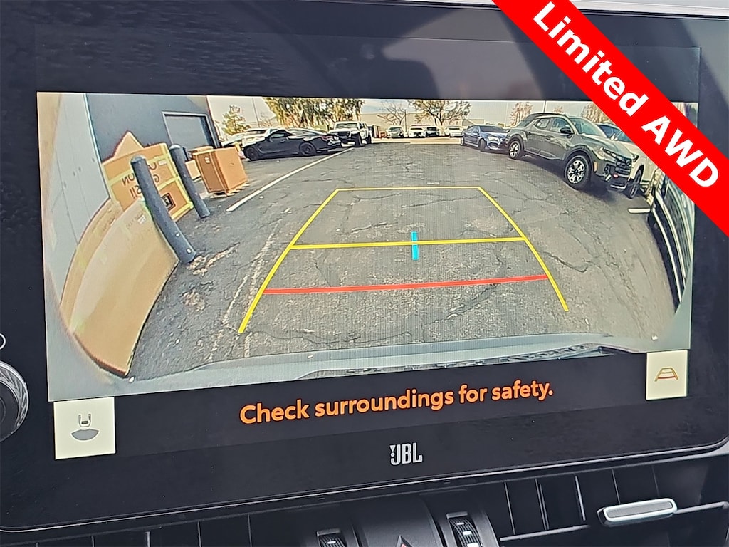 THIS VEHICLE IS EQUIPPED WITH THE FOLLOWING OPTIONS AND FEATURES: AWD, Black w/Fabric Seat Trim, 11 Speakers, 4-Wheel Disc Brakes, ABS brakes, Air Conditioning, Alloy wheels, AM/FM radio: SiriusXM, Auto High-beam Headlights, Auto-dimming Rear-View mirror, Automatic temperature control, Axle Ratio: 3.177, Brake assist, Bumpers: body-color, Delay-off headlights, Driver door bin, Driver vanity mirror, Dual front impact airbags, Dual front side impact airbags, Electronic Stability Control, Emergency communication system: Safety Connect (10-year trial), Exterior Parking Camera Rear, Four wheel independent suspension, Front anti-roll bar, Front Bucket Seats, Front Center Armrest, Front dual zone A/C, Front fog lights, Front reading lights, Fully automatic headlights, Garage door transmitter: HomeLink, Heated door mirrors, Heated front seats, Heated/Ventilated Front Bucket Seats, Illuminated entry, JBL Audio System, Knee airbag, Leather Shift Knob, Leather steering wheel, Low tire pressure warning, Memory seat, Occupant sensing airbag, Outside temperature display, Overhead airbag, Overhead console, Panic alarm, Passenger door bin, Passenger vanity mirror, Power door mirrors, Power driver seat, Power Liftgate, Power moonroof, Power passenger seat, Power steering, Power windows, Radio data system, Rear anti-roll bar, Rear seat center armrest, Rear window defroster, Rear window wiper, Remote keyless entry, Security system, SofTex Seat Trim, Speed control, Speed-sensing steering, Split folding rear seat, Spoiler, Steering wheel mounted audio controls, Tachometer, Telescoping steering wheel, Tilt steering wheel, Traction control, Trip computer, Turn signal indicator mirrors, Variably intermittent wipers, Ventilated front seats, and Wheels: 19 Multi-Spoke Super Chrome Alloy. 25/33 City/Highway MPG