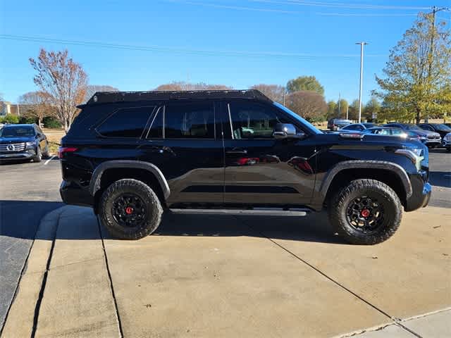 Reverse Camera, Clean Carfax, ABS brakes, Active Cruise Control, Alloy wheels, Compass, Electronic Stability Control, Front dual zone A/C, Heated & Ventilated Front Seats, Heated door mirrors, Heated front seats, Illuminated entry, Low tire pressure warning, Navigation System, Navigation system: Drive Connect (1 year trial) includes Cloud Navigation with real time traffic and Google POI, Power moonroof, Remote keyless entry, Traction control, TRD Pro LED Light Bar, Wheels: 20 Machined-Finish Alloy. CARFAX One-Owner. Midnight Black Metallic 2024 Toyota Sequoia TRD Pro 4WD 10-Speed Automatic V6 Hybrid