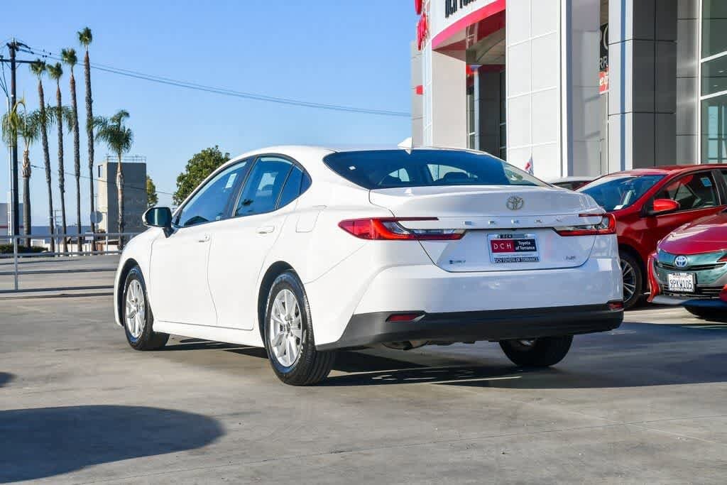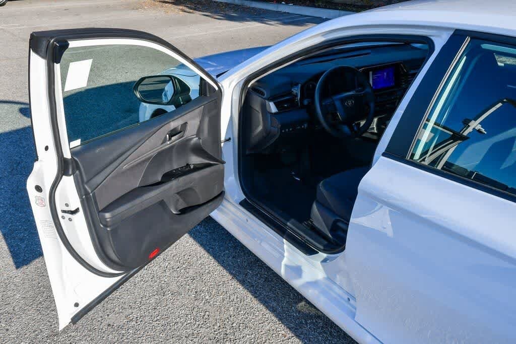 CARFAX One-Owner. Ice Cap 2025 Toyota Camry LE FWD eCVT 2.5L 4-Cylinder 16V DOHC 4-Wheel Disc Brakes, 6 Speakers, Alloy wheels, AM/FM radio: SiriusXM, Apple CarPlay/Android Auto, Auto High-beam Headlights, Automatic temperature control, Brake assist, Bumpers: body-color, Delay-off headlights, Driver door bin, Driver vanity mirror, Dual front impact airbags, Dual front side impact airbags, Electronic Stability Control, Emergency communication system: Safety Connect (up to 10-year trial subscription), Exterior Parking Camera Rear, Fabric Seat Trim, Four wheel independent suspension, Front anti-roll bar, Front Bucket Seats, Front Center Armrest, Front dual zone A/C, Fully automatic headlights, Heated door mirrors, Illuminated entry, Knee airbag, Occupant sensing airbag, Overhead airbag, Overhead console, Panic alarm, Passenger door bin, Passenger vanity mirror, Power door mirrors, Radio: Toyota Audio Multimedia w/8 Touchscreen, Rear anti-roll bar, Rear seat center armrest, Rear side impact airbag, Remote keyless entry, Security system, Speed control, Speed-sensing steering, Split folding rear seat, Steering wheel mounted audio controls, Telescoping steering wheel, Tilt steering wheel, Turn signal indicator mirrors, Wheels: 16 Silver-Finished Alloy.
