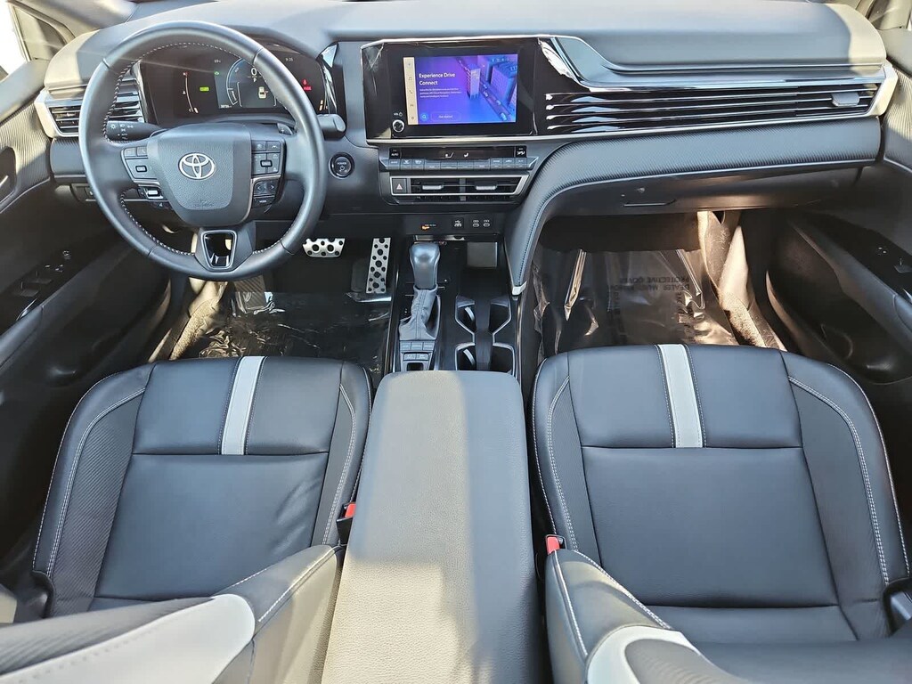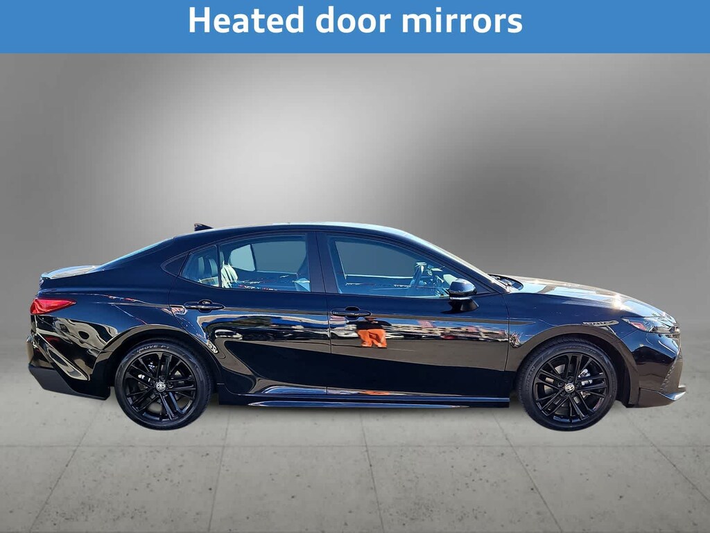 A dynamic performer, our One Owner, Accident Free 2025 Toyota Camry SE Sedan is designed for miles of smiles in Midnight Black Metallic! Motivated by a 2.5 Liter 4 Cylinder and 2 Electric Motors providing a combined 225hp to a paddle-shifted eCVT for gear changes on your command. This Front Wheel Drive sedan also features a sport-tuned suspension for quicker cornering, and it returns 47mpg in the city and nearly 48mpg on the highway. Athletically inspired Camry details like a black sport-mesh grille, racing-inspired front air curtains, dual chrome exhaust tips, a rear spoiler, a sport-style rear diffuser, LED lighting, and black alloy wheels can leave a lasting impression.