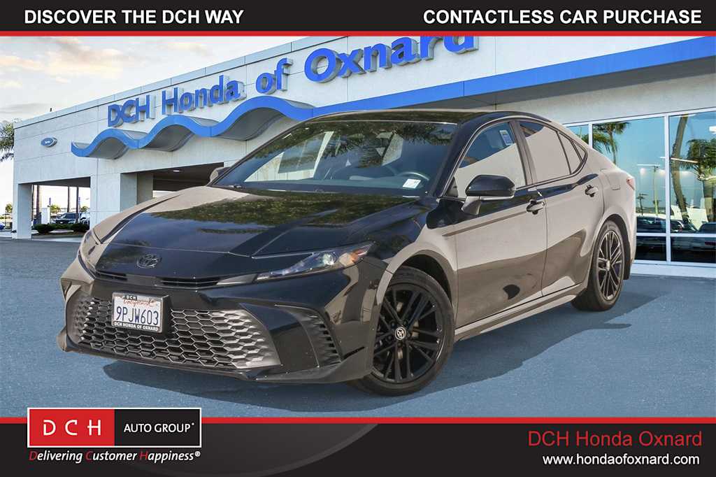 Thank you for choosing DCH Honda of Oxnard! CARFAX One-Owner. Clean CARFAX. Midnight Black Metallic 2025 Toyota Camry SE FWD eCVT 2.5L 4-Cylinder 16V DOHC NON-SMOKER!, CLEAN CARFAX!, OIL CHANGED, Camry SE, 4D Sedan, 2.5L 4-Cylinder 16V DOHC, FWD, ABS brakes, Air Conditioning, AM/FM radio: SiriusXM, Apple CarPlay/Android Auto, Electronic Stability Control, Exterior Parking Camera Rear, Fully automatic headlights, Illuminated entry, Steering wheel mounted audio controls.