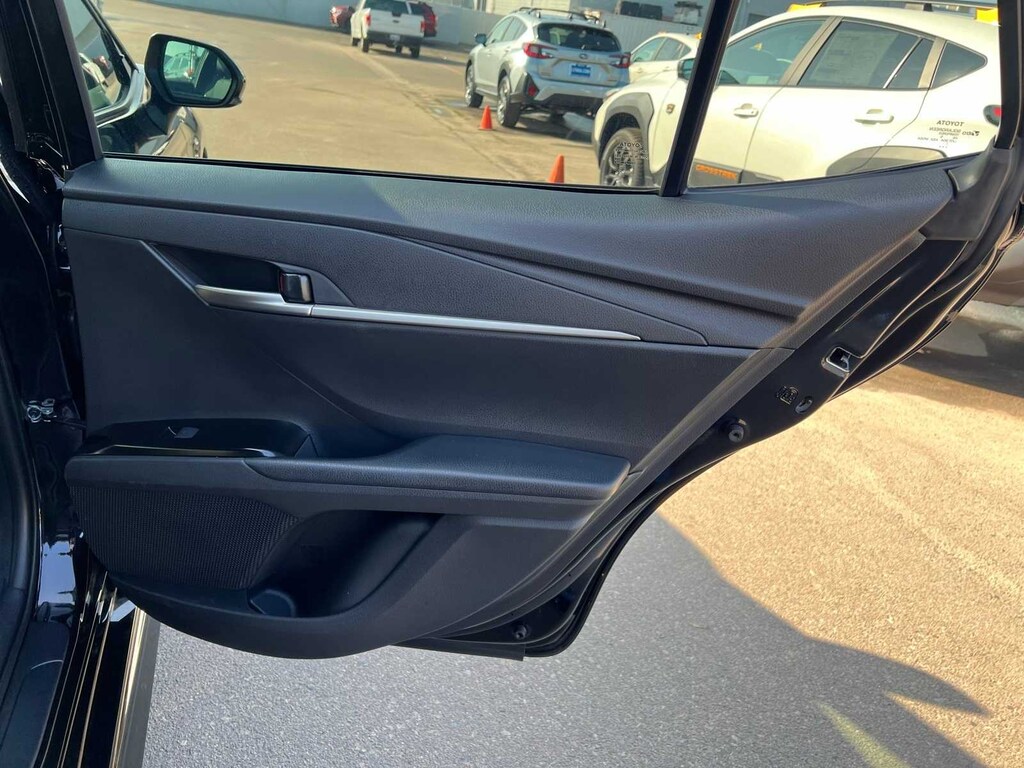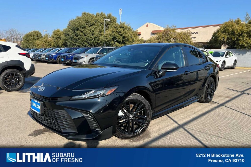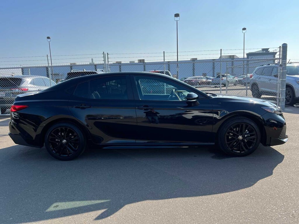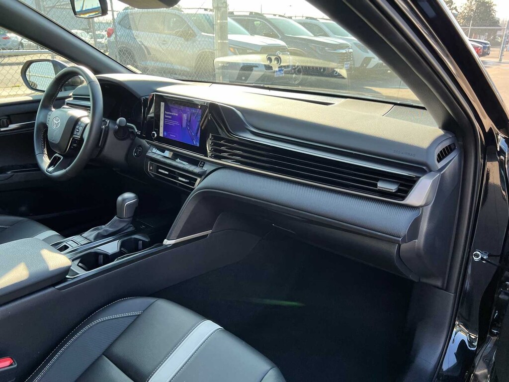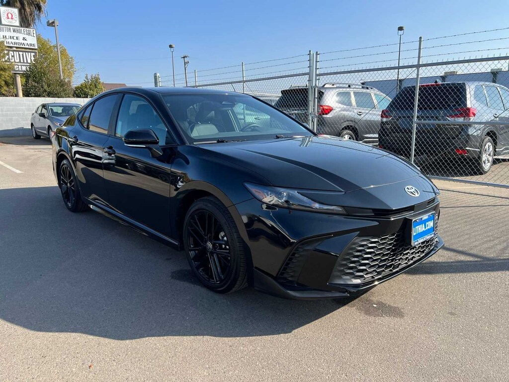 Midnight Black Metallic 2025 Toyota Camry SE Hybrid FWD eCVT 2.5L 4-Cylinder 16V DOHC FRESH ENGINE and CABIN FILTERS, FRESH OIL CHANGE, 138 point Lithia inspected, DETAILED INTERIOR AND EXTERIOR FOR DELIVERY, CERTIFIED BY CARFAX - NO ACCIDENTS, CERTIFIED BY CARFAX - ONE OWNER, Multi Point Safety and Mechanical Inspection Performed by Certified Technician, 2.5L 4-Cylinder 16V DOHC, Black w/Fabric Seat Trim, 4-Wheel Disc Brakes, 6 Speakers, ABS brakes, Active Cruise Control, Air Conditioning, Alloy wheels, AM/FM radio: SiriusXM, Apple CarPlay/Android Auto, Auto High-beam Headlights, Automatic temperature control, Brake assist, Electronic Stability Control, Emergency communication system: Safety Connect (up to 10-year trial subscription), Exterior Parking Camera Rear, Four wheel independent suspension, Front anti-roll bar, Front Bucket Seats, Front dual zone A/C, Fully automatic headlights, Heated door mirrors, Illuminated entry, Leather Shift Knob, Leather steering wheel, Low tire pressure warning, Outside temperature display, Power door mirrors, Power driver seat, Power steering, Power windows, Radio data system, Radio: Toyota Audio Multimedia w/8 Touchscreen, Rear anti-roll bar, Remote keyless entry, SofTex & Fabric Seat Trim, Speed control, Speed-sensing steering, Split folding rear seat, Spoiler, Steering wheel mounted audio controls, Telescoping steering wheel, Tilt steering wheel, Traction control, Turn signal indicator mirrors.