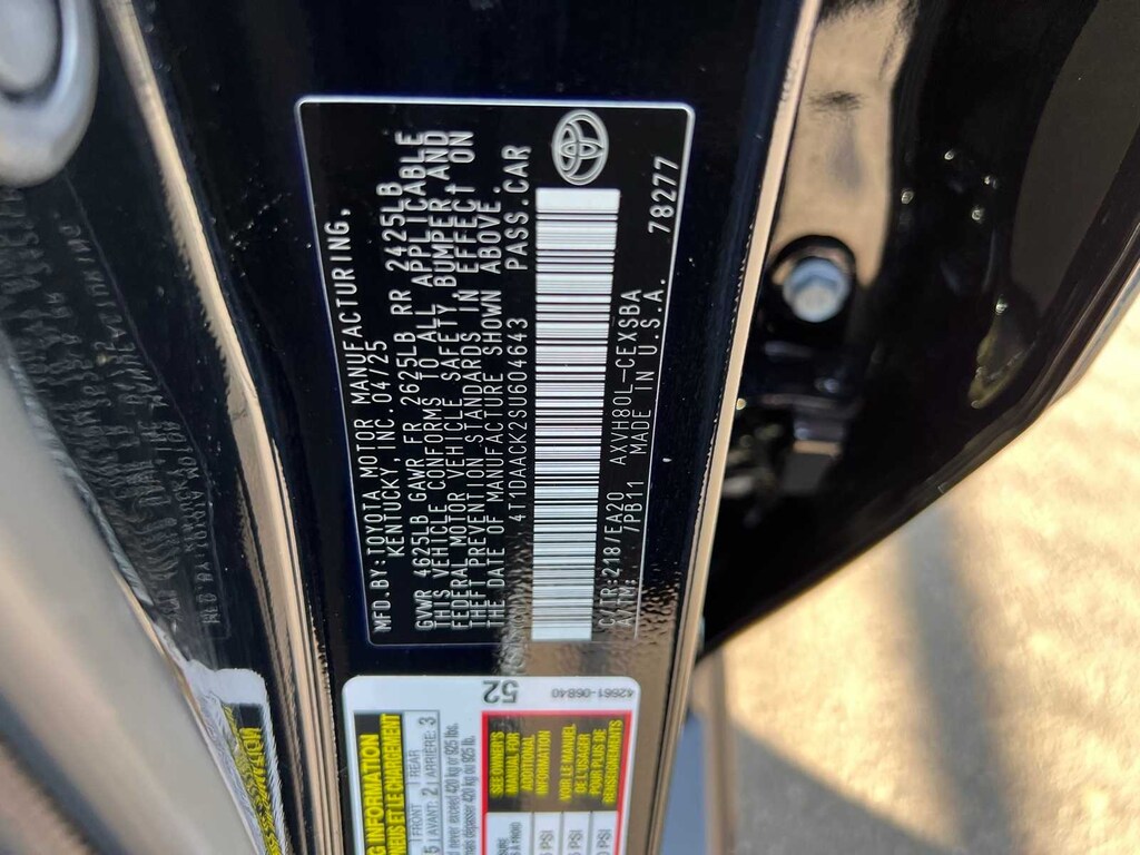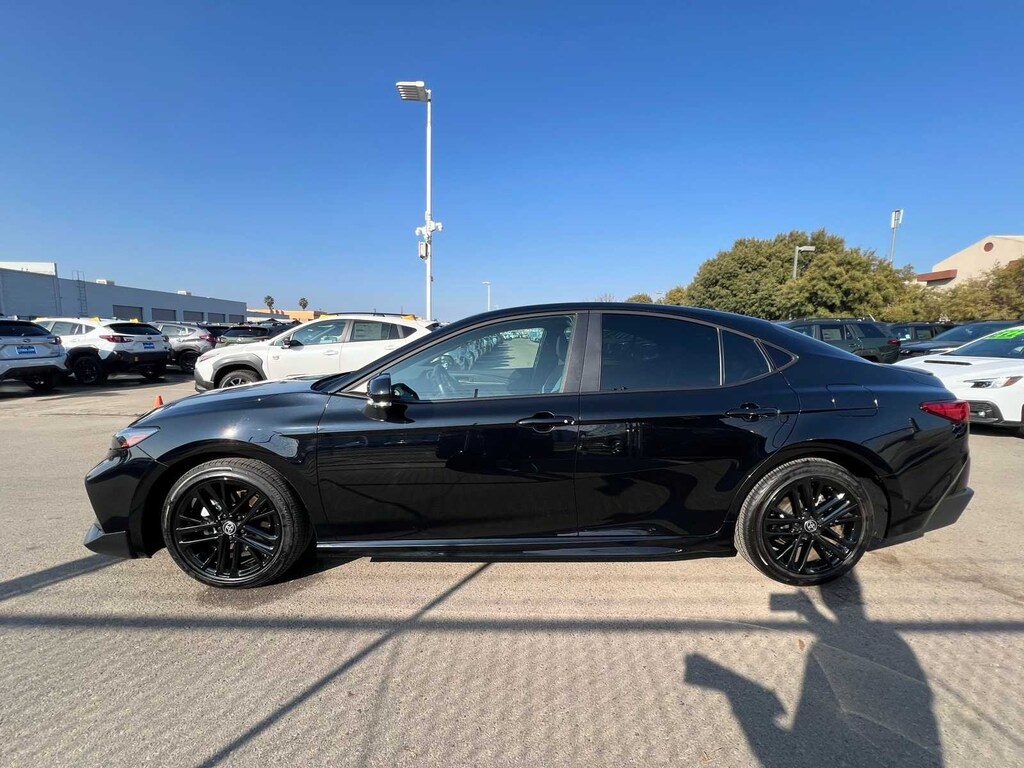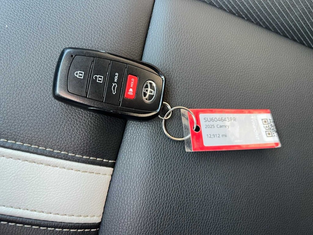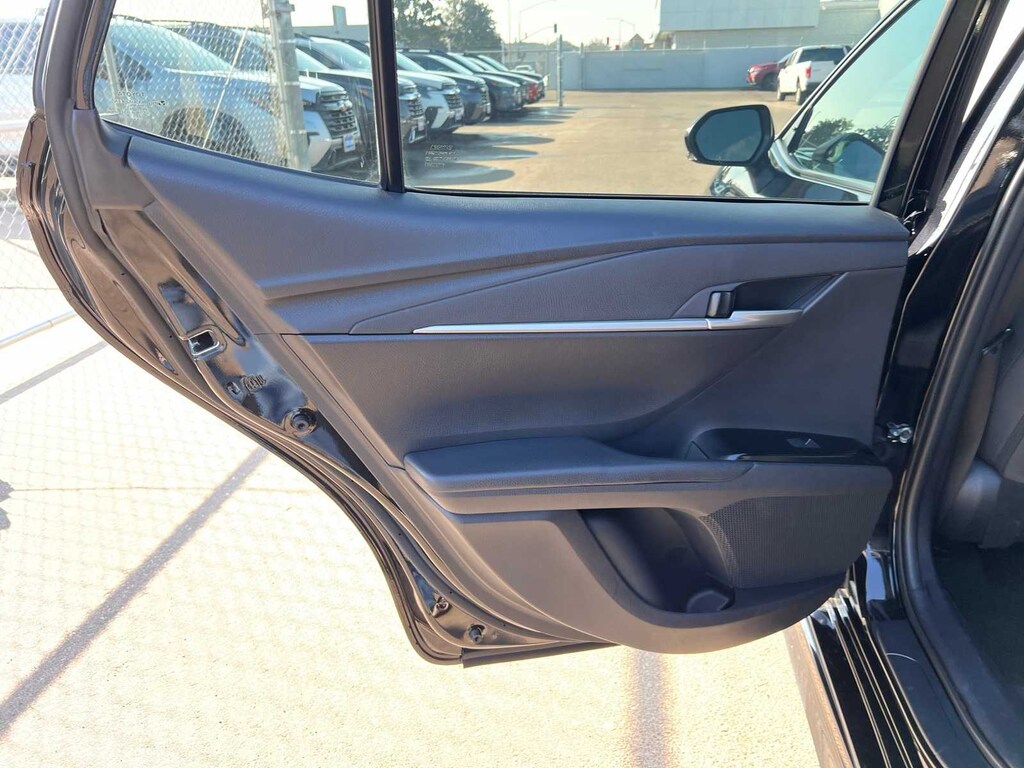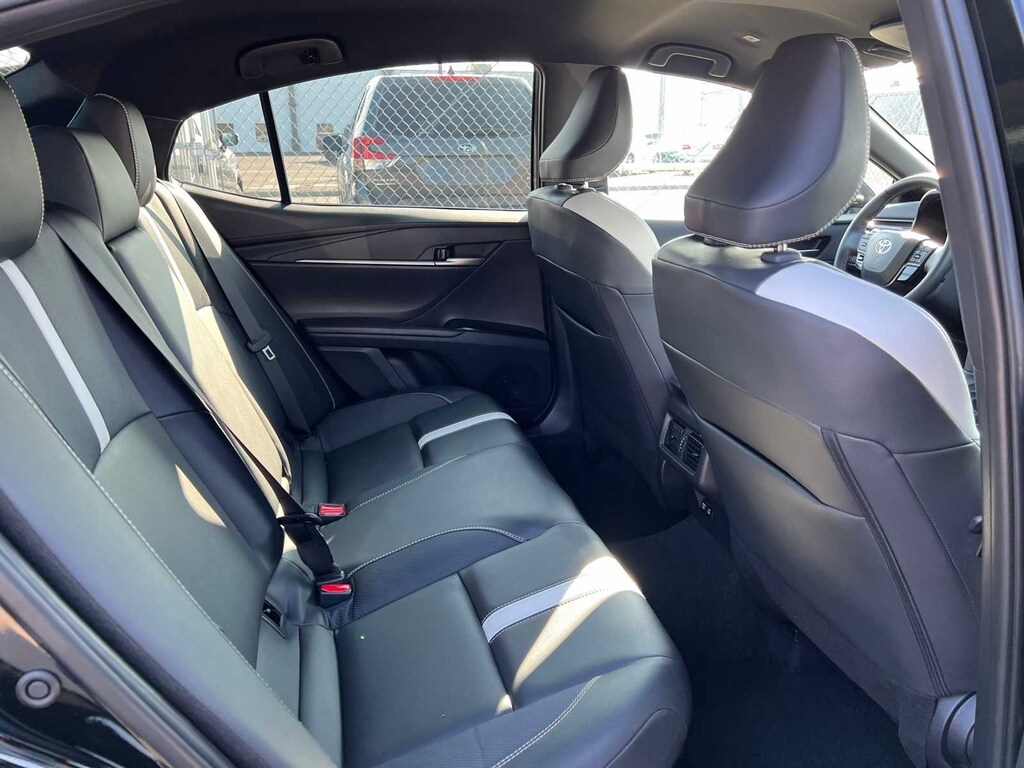 Midnight Black Metallic 2025 Toyota Camry SE Hybrid FWD eCVT 2.5L 4-Cylinder 16V DOHC FRESH ENGINE and CABIN FILTERS, FRESH OIL CHANGE, 138 point Lithia inspected, DETAILED INTERIOR AND EXTERIOR FOR DELIVERY, CERTIFIED BY CARFAX - NO ACCIDENTS, CERTIFIED BY CARFAX - ONE OWNER, Multi Point Safety and Mechanical Inspection Performed by Certified Technician, 2.5L 4-Cylinder 16V DOHC, Black w/Fabric Seat Trim, 4-Wheel Disc Brakes, 6 Speakers, ABS brakes, Active Cruise Control, Air Conditioning, Alloy wheels, AM/FM radio: SiriusXM, Apple CarPlay/Android Auto, Auto High-beam Headlights, Automatic temperature control, Brake assist, Electronic Stability Control, Emergency communication system: Safety Connect (up to 10-year trial subscription), Exterior Parking Camera Rear, Four wheel independent suspension, Front anti-roll bar, Front Bucket Seats, Front dual zone A/C, Fully automatic headlights, Heated door mirrors, Illuminated entry, Leather Shift Knob, Leather steering wheel, Low tire pressure warning, Outside temperature display, Power door mirrors, Power driver seat, Power steering, Power windows, Radio data system, Radio: Toyota Audio Multimedia w/8 Touchscreen, Rear anti-roll bar, Remote keyless entry, SofTex & Fabric Seat Trim, Speed control, Speed-sensing steering, Split folding rear seat, Spoiler, Steering wheel mounted audio controls, Telescoping steering wheel, Tilt steering wheel, Traction control, Turn signal indicator mirrors.