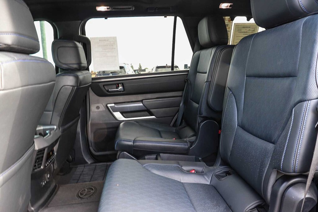 2025 Toyota Sequoia Platinum Blueprint 10-Speed Automatic 4WD V6 Hybrid ABS brakes, Active Cruise Control, Alloy wheels, Compass, Electronic Stability Control, Front dual zone A/C, Heated & Ventilated Front Seats, Heated door mirrors, Heated front seats, Heated rear seats, Illuminated entry, Low tire pressure warning, Power Liftgate, Power moonroof, Premium Leather Seat Trim, Remote keyless entry, Traction control.