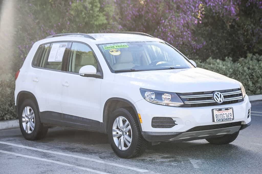 Clean CARFAX. Pure White 2017 Volkswagen Tiguan 2.0T S FWD 6-Speed Automatic with Tiptronic 2.0L TSI DOHC Non-Smoker, COMPLETELY DETAILED, Clean CarFax, OIL CHANGED, Tiguan 2.0T S, 4D Sport Utility, 2.0L TSI DOHC, 6-Speed Automatic with Tiptronic, FWD, AM/FM radio: SiriusXM, Driver door bin, Front anti-roll bar, Illuminated entry, Leather steering wheel, Occupant sensing airbag, Overhead console, Rear window defroster, Security system, Split folding rear seat, Steering wheel mounted audio controls, Traction control, V-Tex Leatherette Seating Surfaces.