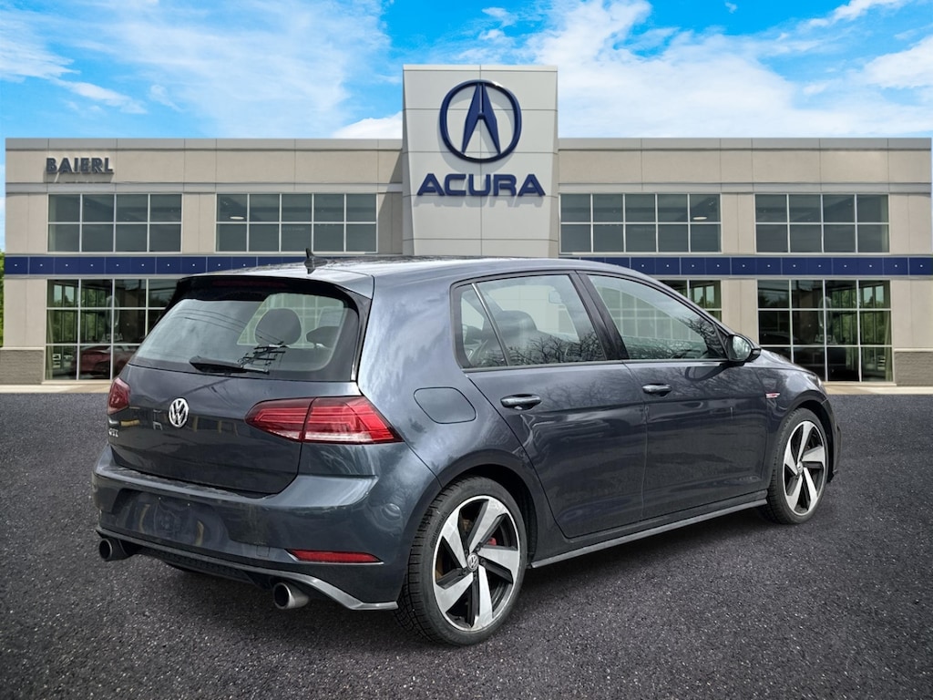 Baierl Acura is pumped up to offer this fantastic 2018 Volkswagen Golf GTI in Night Blue Metallic. This vehicle has been through our award winning factory trained service department*** and comes with the following features; Theres no back-and-forth, we offer one fair price, Sold 100% As Is, HEATED LEATHER TOP SPORT FRONT SEATS, POWER MOONROOF, COMPOSITION MEDIA 8 TOUCHSCREEN WITH BLUETOOTH, APPLE CARPLAY / ANDROID AUTO, SIRIUSXM, BACK-UP CAMERA SYSTEM, MANUAL TRANSMISSION, POWER DRIVER SEAT, KEYLESS ENTRY, 18 DALLAS ALLOY WHEELS, SPORT TUNED SUSPENSION, 4-Wheel Disc Brakes, 8 Speakers, ABS brakes, Air Conditioning, AM/FM radio: SiriusXM, Anti-whiplash front head restraints, Brake assist, Bumpers: body-color, CD player, Compass, Driver door bin, Driver vanity mirror, Dual front impact airbags, Dual front side impact airbags, Electronic Stability Control, Emergency communication system: VW Car-Net, Exterior Parking Camera Rear, Four wheel independent suspension, Front anti-roll bar, Front Bucket Seats, Front Center Armrest, Front fog lights, Front reading lights, Fully automatic headlights, Heated door mirrors, Heated Top Sport Front Seats, Illuminated entry, Leather Seating Surfaces, Leather Shift Knob, Leather steering wheel, Low tire pressure warning, Occupant sensing airbag, Outside temperature display, Overhead airbag, Overhead console, Panic alarm, Passenger vanity mirror, Power door mirrors, Power driver seat, Power moonroof, Power passenger seat, Power steering, Power windows, Radio data system, Radio: Composition Media w/8 Touchscreen, Rear anti-roll bar, Rear reading lights, Rear seat center armrest, Rear window defroster, Remote keyless entry, Roadside Assistance Kit, Rubber Mat Kit, SE Leather Package, Speed control, Speed-sensing steering, Speed-Sensitive Wipers, Spoiler, Sport steering wheel, Steering wheel mounted audio controls, Tachometer, Telescoping steering wheel, Traction control, Trip computer, Turn signal indicator mirrors, Wheels: 18 Dallas Alloy.