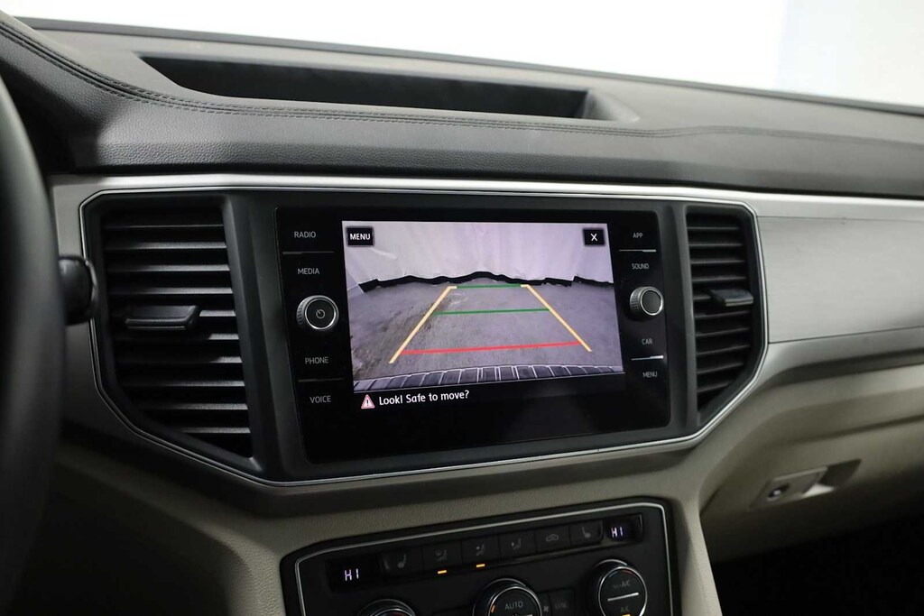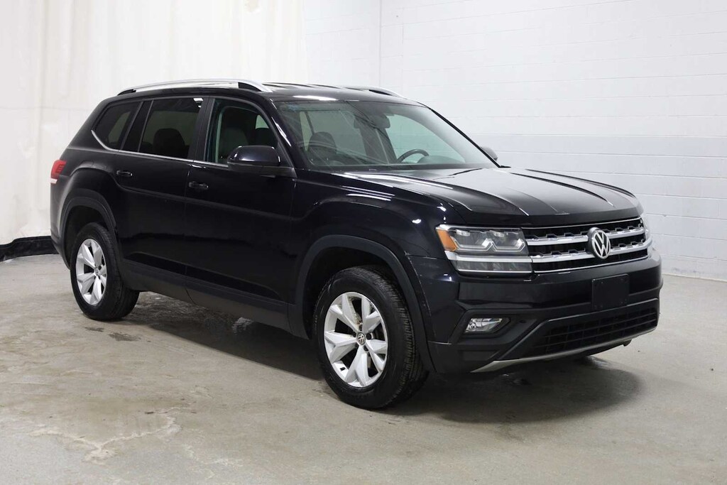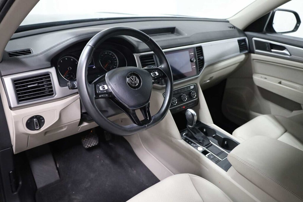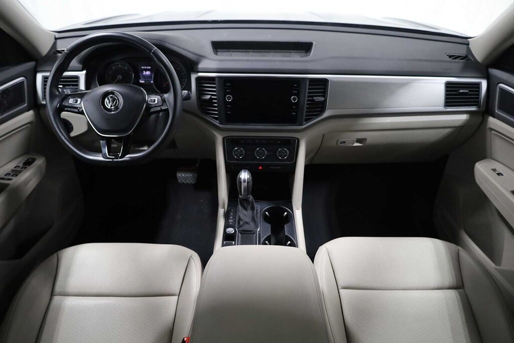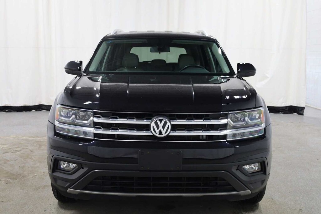 Deep Black Pearl 2019 Volkswagen Atlas 3.6L V6 SE FWD 8-Speed Automatic with Tiptronic 3.6L VR6 Atlas 3.6L V6 SE, 3.6L VR6, FWD, Shetland Beige w/Perforated Vienna Leather Seating Surfaces, 18 5-Spoke Wheels, 3rd row seats: split-bench, Electronic Stability Control, Exterior Parking Camera Rear, Forward collision: FCW w/Autonomous Emergency Braking mitigation, Front Bucket Seats, Front Center Armrest, Heated door mirrors, Heated front seats.