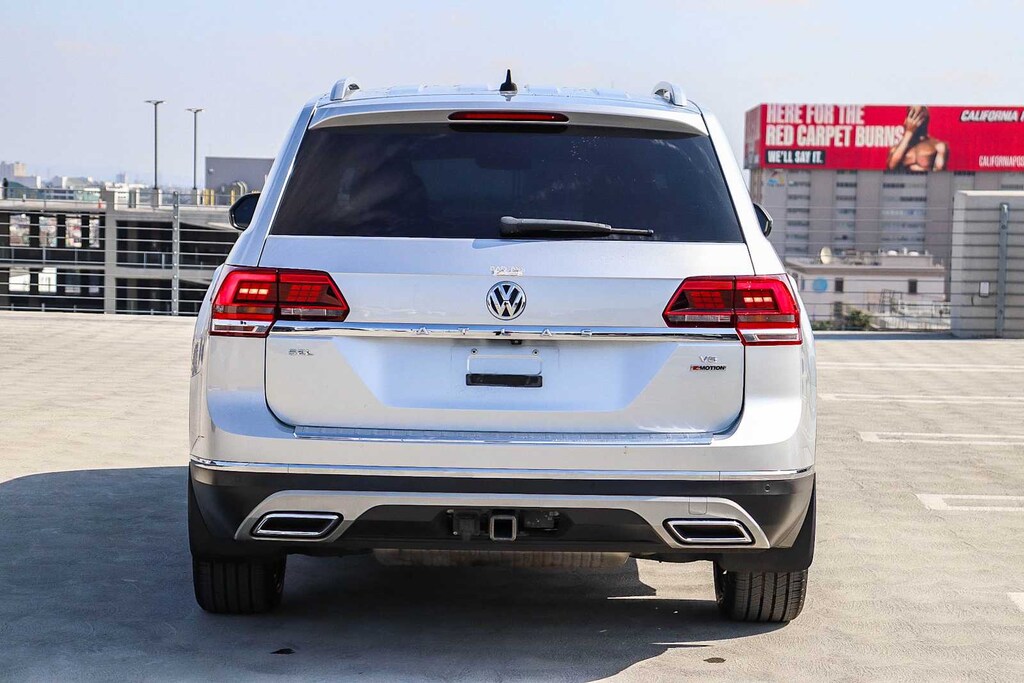 2019 Volkswagen Atlas SEL 4Motion Volkswagen of Downtown LA presents for sale this 2019 Volkswagen Atlas SEL as part of our hand-selected pre-owned lineup. This vehicle is finished in the Reflex Silver Metallic exterior paint and Titan Black interior. Features Include: 20 Black Triple 5-Spoke Wheels (Wheels: 20 Black Triple 5-Spoke Alloy), Atlas SEL 4Motion, 4D Sport Utility, 3.6L V6, 8-Speed Automatic with Tiptronic, AWD, Reflex Silver Metallic, Titan Black Premium Synthetic, 2nd-Row Dual Captains Chairs, 3rd row seats: split-bench, 8 Speakers, 8-Way Power Driver and Passenger Seat, Brake assist, Electronic Stability Control, Exterior Parking Camera Rear, Forward collision: FCW w/Autonomous Emergency Braking mitigation, Navigation System, Panoramic Sunroof Package, Power Liftgate, Radio: Discover Media 8.0 Touchscreen w/Nav, Rear air conditioning, Rear Bumper Applique in Chrome, Remote keyless entry with push button start, Spoiler, and Trailer Hitch Extras (DISC)