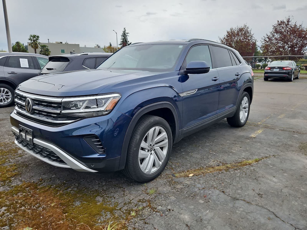 3.60 Axle Ratio, 4-Wheel Disc Brakes, 6 Speakers, ABS brakes, Air Conditioning, Alloy wheels, AM/FM radio: SiriusXM, Auto-dimming Rear-View mirror, Automatic temperature control, Brake assist, Bumpers: body-color, Carpeted Mats, Compass, Delay-off headlights, Driver door bin, Driver vanity mirror, Dual front impact airbags, Dual front side impact airbags, Electronic Stability Control, Emergency communication system: VW Car-Net services (capabilities require enrollment or subscription), Exterior Parking Camera Rear, Four wheel independent suspension, Front anti-roll bar, Front Bucket Seats, Front Center Armrest, Front dual zone A/C, Front fog lights, Front reading lights, Fully automatic headlights, Heated Comfort Front Bucket Seats, Heated door mirrors, Heated front seats, Illuminated entry, Leather Shift Knob, Low tire pressure warning, Occupant sensing airbag, Outside temperature display, Overhead airbag, Overhead console, Panic alarm, Passenger door bin, Passenger vanity mirror, Power door mirrors, Power driver seat, Power Liftgate, Power steering, Power windows, Radio data system, Radio: Composition Media w/8.0 Touchscreen, Rain sensing wipers, Rear anti-roll bar, Rear reading lights, Rear seat center armrest, Rear window defroster, Rear window wiper, Remote CD player, Remote keyless entry, Roadside Assistance Kit, Roof rack: rails only, Security system, Speed control, Speed-sensing steering, Split folding rear seat, Spoiler, Standard Suspension, Steering wheel mounted audio controls, Tachometer, Telescoping steering wheel, Tilt steering wheel, Traction control, Trip computer, Turn signal indicator mirrors, V-Tex Leatherette Seating Surfaces, Variably intermittent wipers, VW App-Connect (w/Apple CarPlay, Android Auto & MirrorLink), Wheels: 20 5-Spoke Silver Alloy (CQ0). Some of our Pre-Owned vehicles may be subject to unrepaired safety recalls. Check for a vehicle??s unrepaired recalls by VIN at http://vinrcl.safercar.gov/vin/