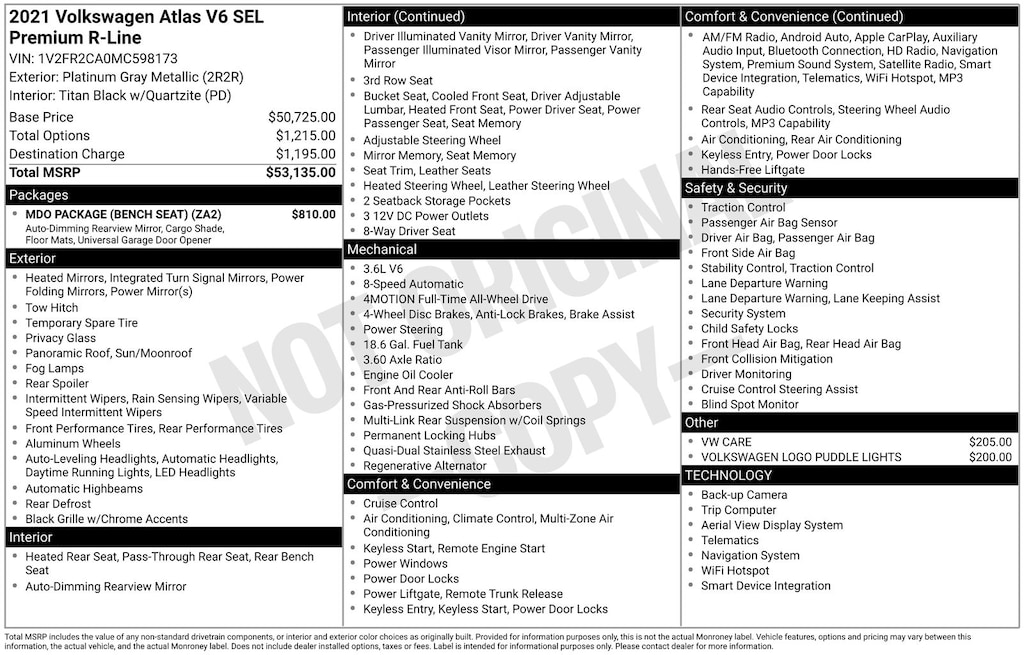 I encourage you to schedule a test drive and experience the exceptional capabilities and features of this 2021 Volkswagen Atlas 3.6L V6 SEL Premium R-Line for yourself. This is an opportunity to own a truly exceptional SUV that will exceed your expectations and provide you with the ultimate in driving satisfaction. Don't miss out on this remarkable opportunity â" visit our showroom today and let's discuss how we can get you behind the wheel of this impressive vehicle.