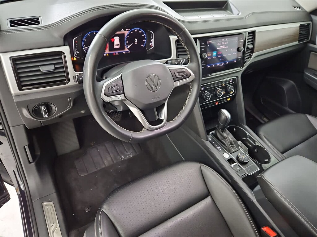 3.60 Axle Ratio, 3rd row seats: split-bench, 4-Wheel Disc Brakes, 6 Speakers, ABS brakes, Air Conditioning, Alloy wheels, Auto High-beam Headlights, Auto-dimming Rear-View mirror, Automatic temperature control, Brake assist, Bumpers: body-color, Compass, Delay-off headlights, Driver door bin, Driver vanity mirror, Dual front impact airbags, Dual front side impact airbags, Electronic Stability Control, Emergency communication system: VW Car-Net services (capabilities require enrollment or subscription), Exterior Parking Camera Rear, Four wheel independent suspension, Front anti-roll bar, Front Bucket Seats, Front Center Armrest, Front dual zone A/C, Front fog lights, Front reading lights, Fully automatic headlights, Heated Comfort Front Bucket Seats, Heated door mirrors, Heated front seats, Heated steering wheel, Illuminated entry, Leather Shift Knob, Low tire pressure warning, Memory seat, Navigation System, Occupant sensing airbag, Outside temperature display, Overhead airbag, Overhead console, Panic alarm, Passenger door bin, Passenger vanity mirror, Perforated V-Tex Leatherette Seating Surfaces, Power door mirrors, Power driver seat, Power Liftgate, Power moonroof, Power passenger seat, Power steering, Power windows, Radio data system, Rain sensing wipers, Rear air conditioning, Rear anti-roll bar, Rear reading lights, Rear seat center armrest, Rear window defroster, Rear window wiper, Remote keyless entry, Roof rack: rails only, Security system, Speed control, Speed-sensing steering, Split folding rear seat, Spoiler, Standard Suspension, Steering wheel mounted audio controls, Tachometer, Telescoping steering wheel, Tilt steering wheel, Traction control, Trip computer, Turn signal indicator mirrors, Variably intermittent wipers, Wheels: 20 5-Spoke Silver Alloy. Some of our Pre-Owned vehicles may be subject to unrepaired safety recalls. Check for a vehicle??s unrepaired recalls by VIN at http://vinrcl.safercar.gov/vin/
