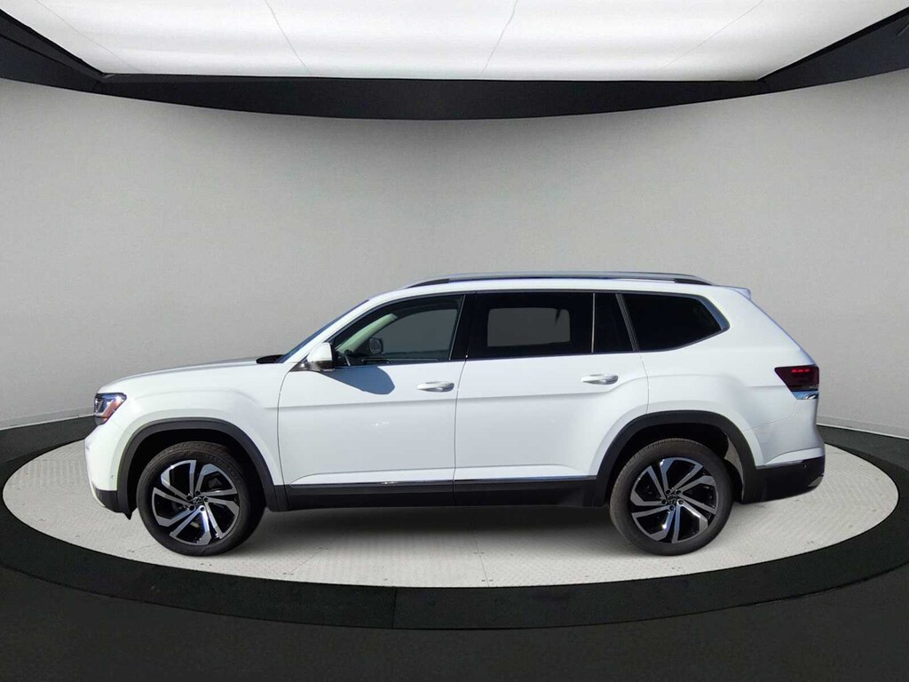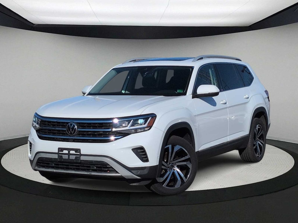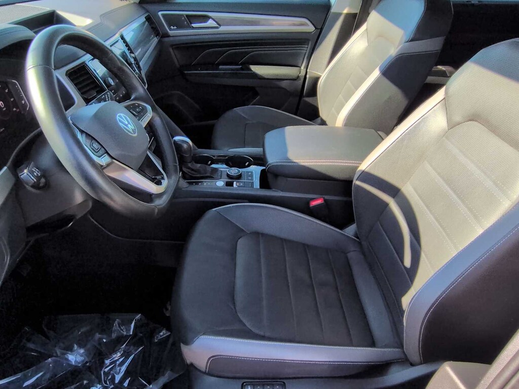 Trailer Hitch Extras, Navigation System, 12 Speakers, 3.60 Axle Ratio, 3rd row seats: split-bench, 4-Wheel Disc Brakes, ABS brakes, Air Conditioning, Alloy wheels, Auto High-beam Headlights, Auto-dimming Rear-View mirror, Automatic temperature control, Brake assist, Bumpers: body-color, Compass, Delay-off headlights, Driver door bin, Driver vanity mirror, Dual front impact airbags, Dual front side impact airbags, Electronic Stability Control, Emergency communication system: VW Car-Net services (capabilities require enrollment or subscription), Four wheel independent suspension, Front anti-roll bar, Front Bucket Seats, Front Center Armrest, Front dual zone A/C, Front fog lights, Front reading lights, Fully automatic headlights, Heated door mirrors, Heated front seats, Heated rear seats, Heated steering wheel, Htd/Actively Ventilated Comfort Front Sport Seats, Illuminated entry, Leather Shift Knob, Low tire pressure warning, Memory seat, Occupant sensing airbag, Outside temperature display, Overhead airbag, Overhead console, Panic alarm, Passenger door bin, Passenger vanity mirror, Perforated Vienna Leather Seating Surfaces, Power door mirrors, Power driver seat, Power Liftgate, Power moonroof, Power passenger seat, Power steering, Power windows, Radio data system, Rain sensing wipers, Rear air conditioning, Rear anti-roll bar, Rear audio controls, Rear reading lights, Rear seat center armrest, Rear window defroster, Rear window wiper, Remote keyless entry, Roof rack: rails only, Security system, Speed control, Speed-sensing steering, Split folding rear seat, Spoiler, Standard Suspension, Steering wheel mounted audio controls, Tachometer, Telescoping steering wheel, Tilt steering wheel, Traction control, Trip computer, Turn signal indicator mirrors, Variably intermittent wipers, Ventilated front seats, and Wheels: 20 5-Spoke 2-Tone Machined Alloy.