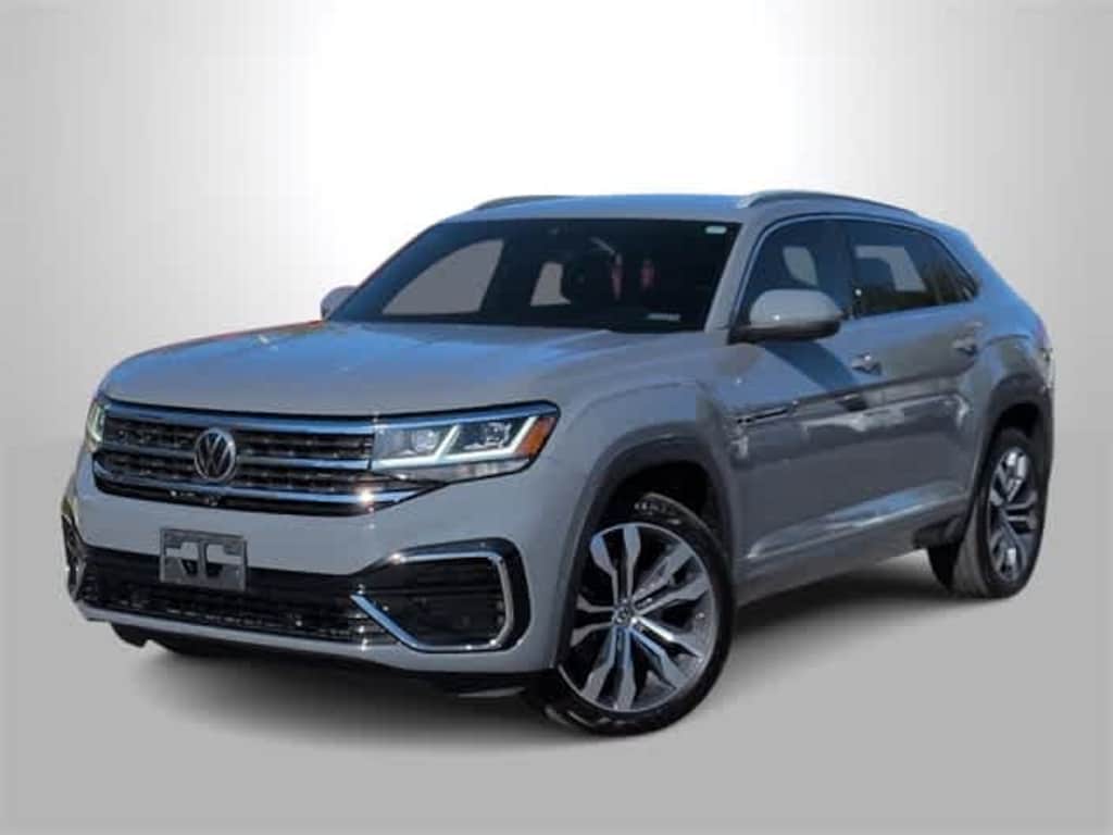 Impressively equipped, our One Owner 2021 Volkswagen Atlas Cross Sport V6 SEL Premium R-Line 4MOTION is both adventurous and luxurious in Pure Gray! Powered by an athletic 3.6 Liter V6 that supplies a robust 276hp to an 8 Speed Automatic transmission with a Sport mode for brisk performance and capable towing. This All Wheel Drive SUV handles extremely well for an enjoyable ride, and it returns nearly 22mpg on the highway. With a raked roofline, our Atlas Cross Sport has a bold appearance thats enhanced by exclusive R-Line bumpers, LED lighting, a panoramic sunroof, a hands-free tailgate, and exclusive alloy wheels.