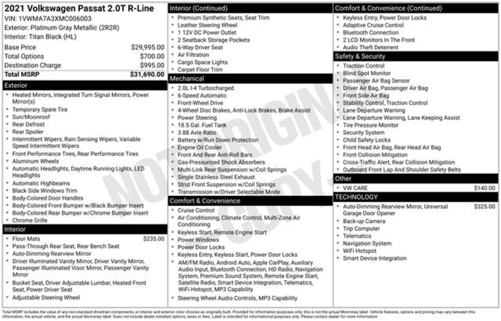 Platinum Gray Metallic 2021 Volkswagen Passat 2.0T R-Line 4D Sedan FWD 6-Speed Automatic with Tiptronic 2.0L I4 TSI Turbocharged 24/36 City/Highway MPG