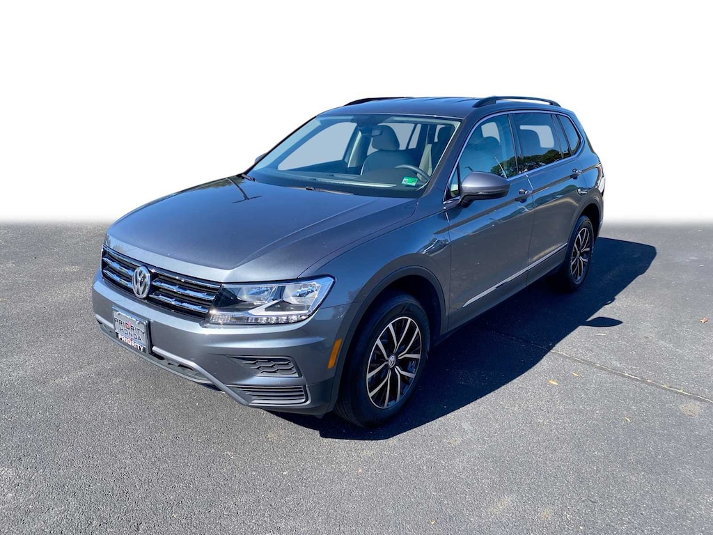 Tiguan 2.0T SE is nicely equipped with Tiguan 2.0T SE, 4D Sport Utility, 2.0L TSI DOHC, 8-Speed Automatic with Tiptronic, FWD, Platinum Gray Metallic, Storm Gray w/Perforated V-Tex Leatherette Seating Surfaces, ABS brakes, Active Cruise Control, Alloy wheels, Compass, Electronic Stability Control, Front dual zone A/C, Heated door mirrors, Heated Front Comfort Seats, Heated front seats, Illuminated entry, Low tire pressure warning, Remote keyless entry, Traction control, 3.33 Axle Ratio, 3rd row seats: bench, 4-Wheel Disc Brakes, 4-Wheel Independent Suspension, 6 Speakers, Air Conditioning, AM/FM radio: SiriusXM with 360L, Automatic temperature control, Brake assist, Bumpers: body-color, Delay-off headlights, Driver door bin, Driver vanity mirror, Dual front impact airbags, Dual front side impact airbags, Emergency communication system: VW Car-Net services (capabilities require enrollment or subscription), Exterior Parking Camera Rear, Forward collision: FCW w/Autonomous Emergency Braking mitigation, Four wheel independent suspension, Front anti-roll bar, Front Bucket Seats, Front Center Armrest, Front reading lights, Fully automatic headlights, Leather Shift Knob, Occupant sensing airbag, Outside temperature display, Overhead airbag, Overhead console, Panic alarm, Passenger door bin, Passenger vanity mirror, Perforated V-Tex Leatherette Seating Surfaces, Power door mirrors, Power driver seat, Power steering, Power windows, Radio data system, Radio: MIB3 Composition Media AM/FM/HD, Rear anti-roll bar, Rear reading lights, Rear seat center armrest, Rear window defroster, Rear window wiper, Roof rack: rails only, Security system, Speed control, Speed-sensing steering, Split folding rear seat, Spoiler, Steering wheel mounted audio controls, Tachometer, Telescoping steering wheel, Tilt steering wheel, Trip computer, Turn signal indicator mirrors, Variably intermittent wipers, and Wheels: 17 2-Tone Machined & Black Alloy.
