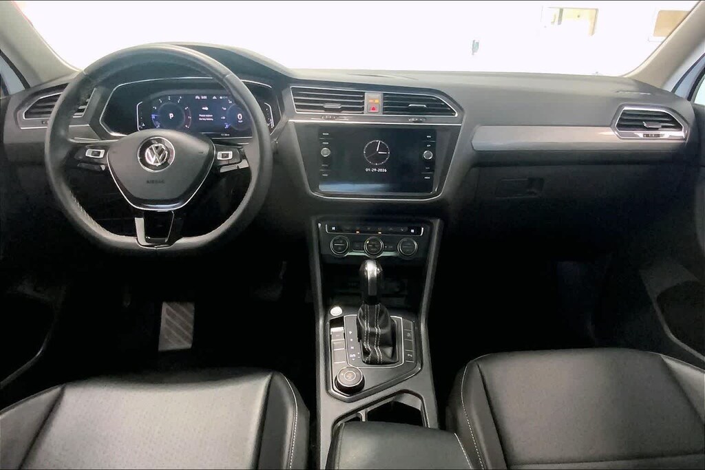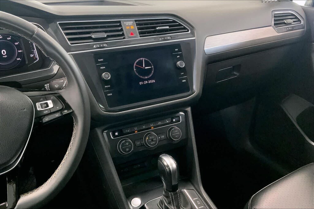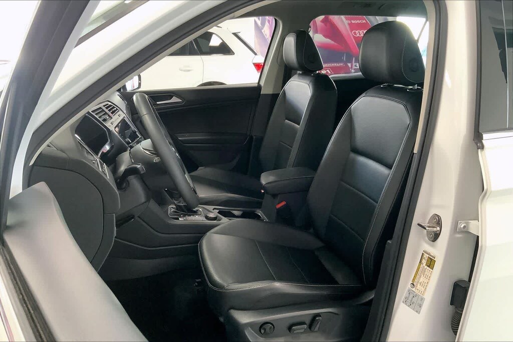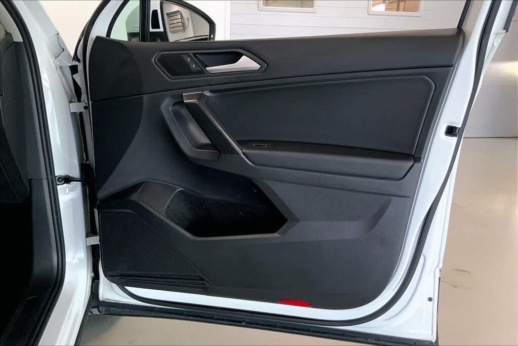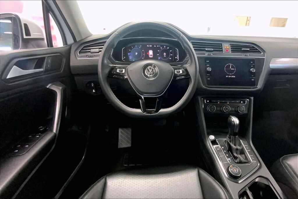 Tiguan 2.0T SE R-Line Black is nicely equipped with AWD, ABS brakes, Active Cruise Control, Alloy wheels, Compass, Electronic Stability Control, Front dual zone A/C, Heated door mirrors, Heated Front Comfort Seats, Heated front seats, Illuminated entry, Low tire pressure warning, Power driver seat, Power moonroof, Power steering, Power windows, Remote keyless entry, Steering wheel mounted audio controls, Traction control, 3.33 Axle Ratio, 4-Wheel Disc Brakes, 4-Wheel Independent Suspension, 6 Speakers, Air Conditioning, AM/FM radio: SiriusXM with 360L, Automatic temperature control, Brake assist, Bumpers: body-color, Delay-off headlights, Driver door bin, Driver vanity mirror, Dual front impact airbags, Dual front side impact airbags, Emergency communication system: VW Car-Net services (capabilities require enrollment or subscription), Exterior Parking Camera Rear, Forward collision: FCW w/Autonomous Emergency Braking mitigation, Four wheel independent suspension, Front anti-roll bar, Front Bucket Seats, Front Center Armrest, Front fog lights, Front reading lights, Fully automatic headlights, Leather Shift Knob, Leather steering wheel, Occupant sensing airbag, Outside temperature display, Overhead airbag, Overhead console, Panic alarm, Passenger door bin, Passenger vanity mirror, Perforated V-Tex Leatherette Seating Surfaces, Power door mirrors, Radio data system, Radio: MIB3 Composition Media AM/FM/HD, Rear anti-roll bar, Rear reading lights, Rear seat center armrest, Rear window defroster, Rear window wiper, Roof rack: rails only, Security system, Speed control, Speed-sensing steering, Split folding rear seat, Spoiler, Sport steering wheel, Tachometer, Telescoping steering wheel, Tilt steering wheel, Trip computer, Turn signal indicator mirrors, Variably intermittent wipers, and Wheels: 20 Machined Black Alloy.